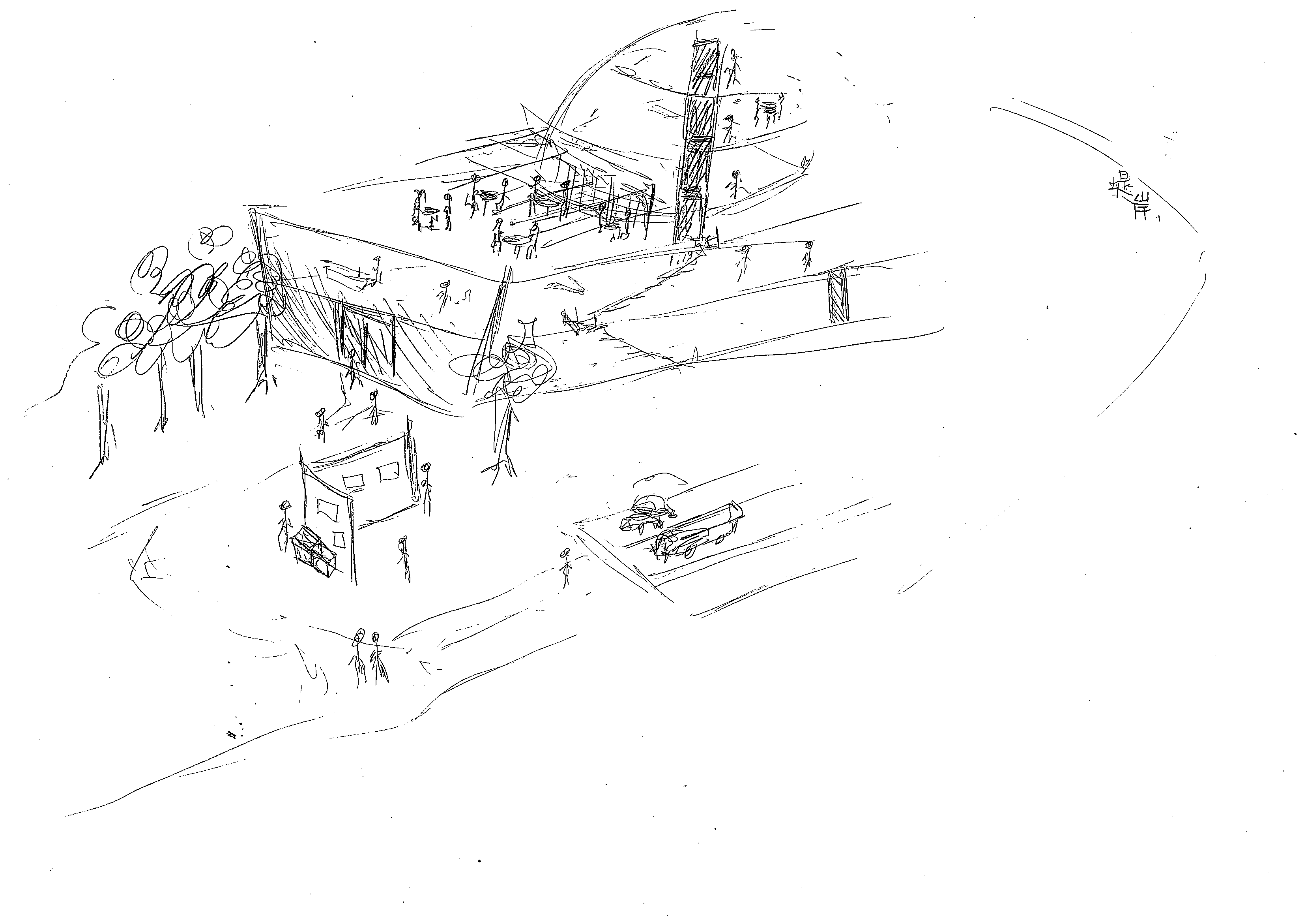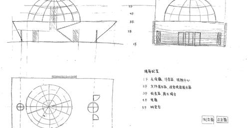 結合中國「天圓地方」的概念完成船的形體,外層全是玻璃,清楚的看穿內部空間。藉著隔板有曲線、疏密、高低等的不同,使得視線有種若隱若現的朦朧美,內有音樂廳、展覽區、餐廳、咖啡吧、觀景台等公共區域,希冀能吸引外地人來認識這片美麗的土地。