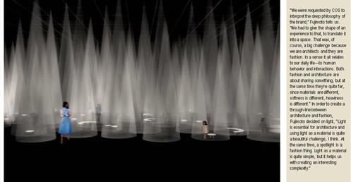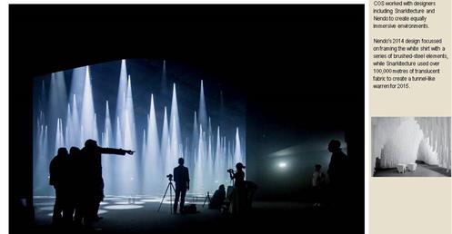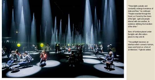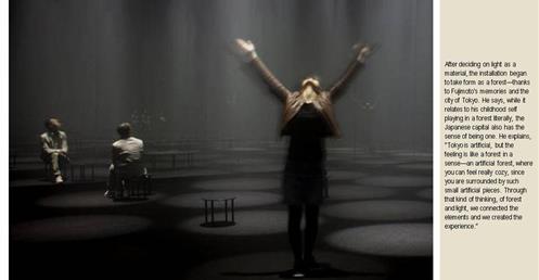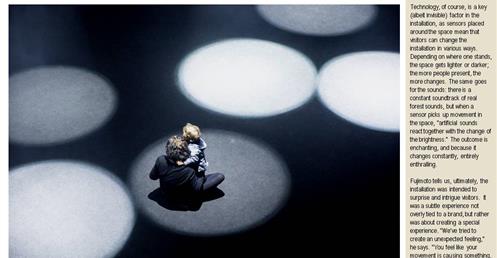 →利用集束投射燈、互動裝置、聲音,鏡子和一團微妙的霧氣,創造一個虛構的人工森林;有點熟悉又有點驚喜的探險;品牌形象