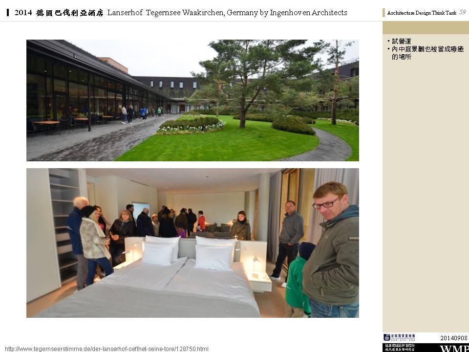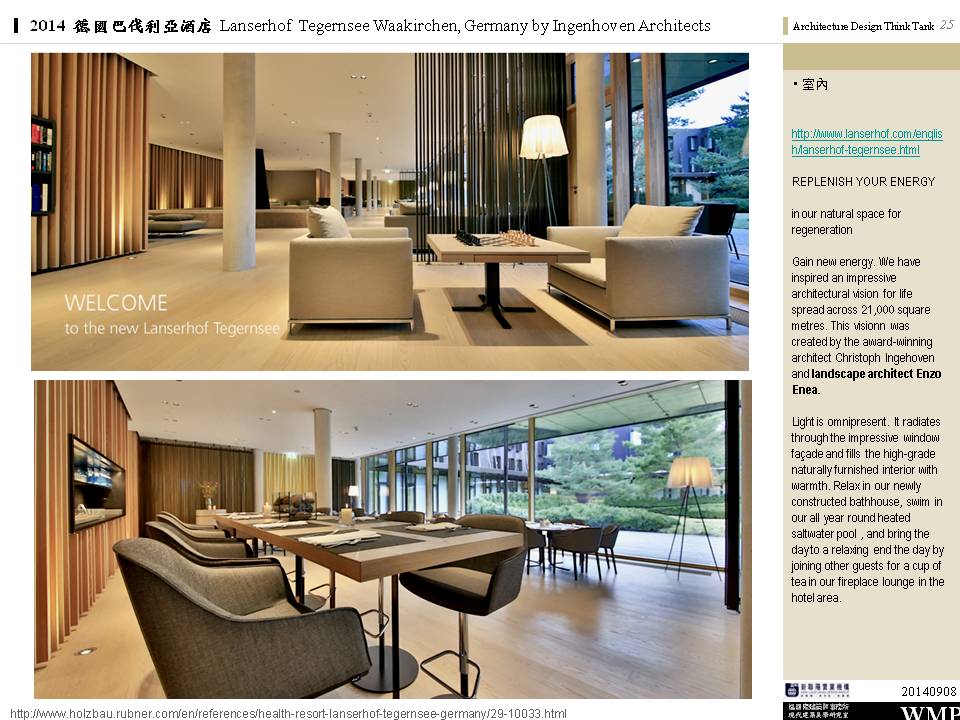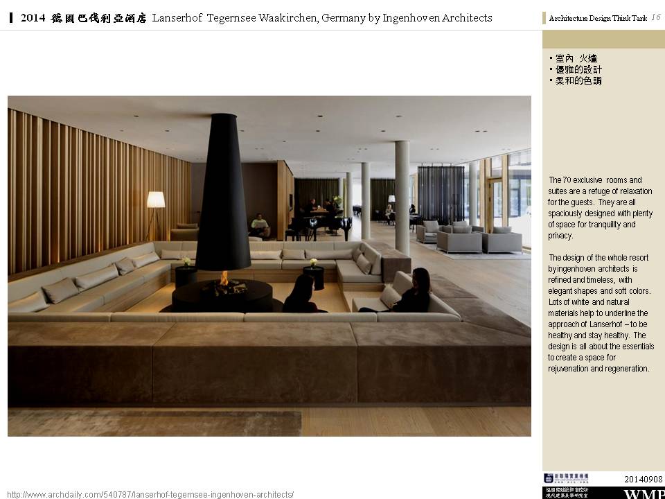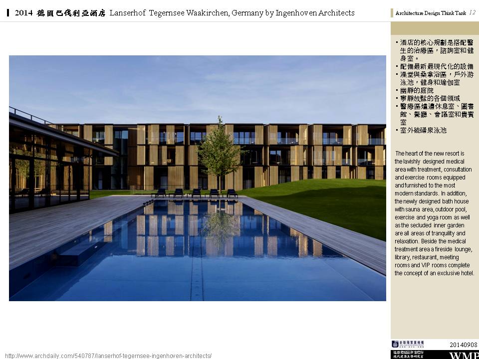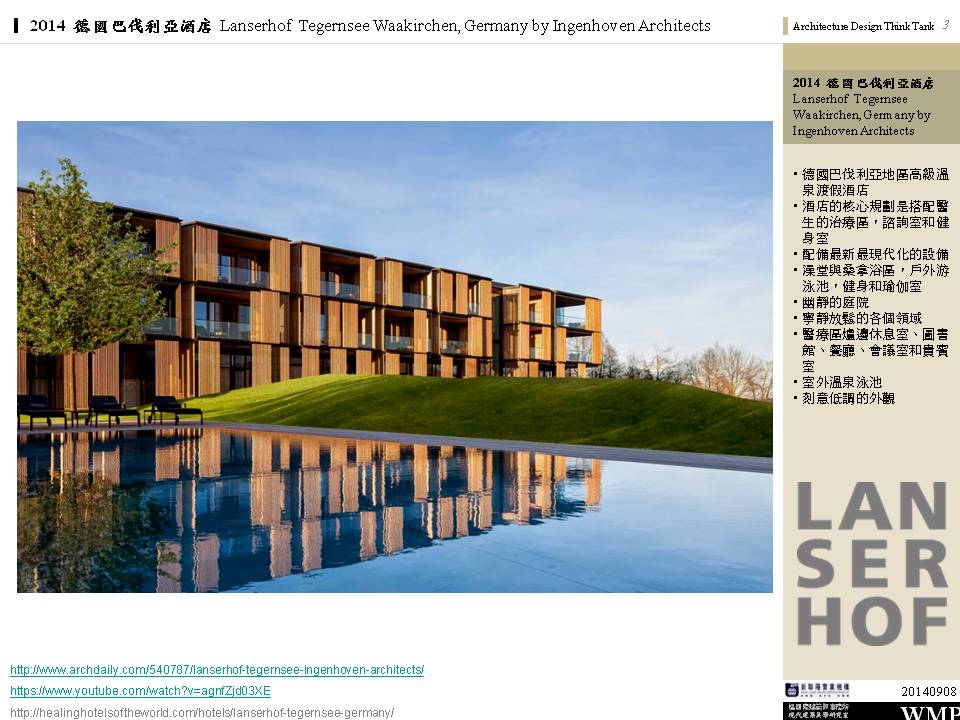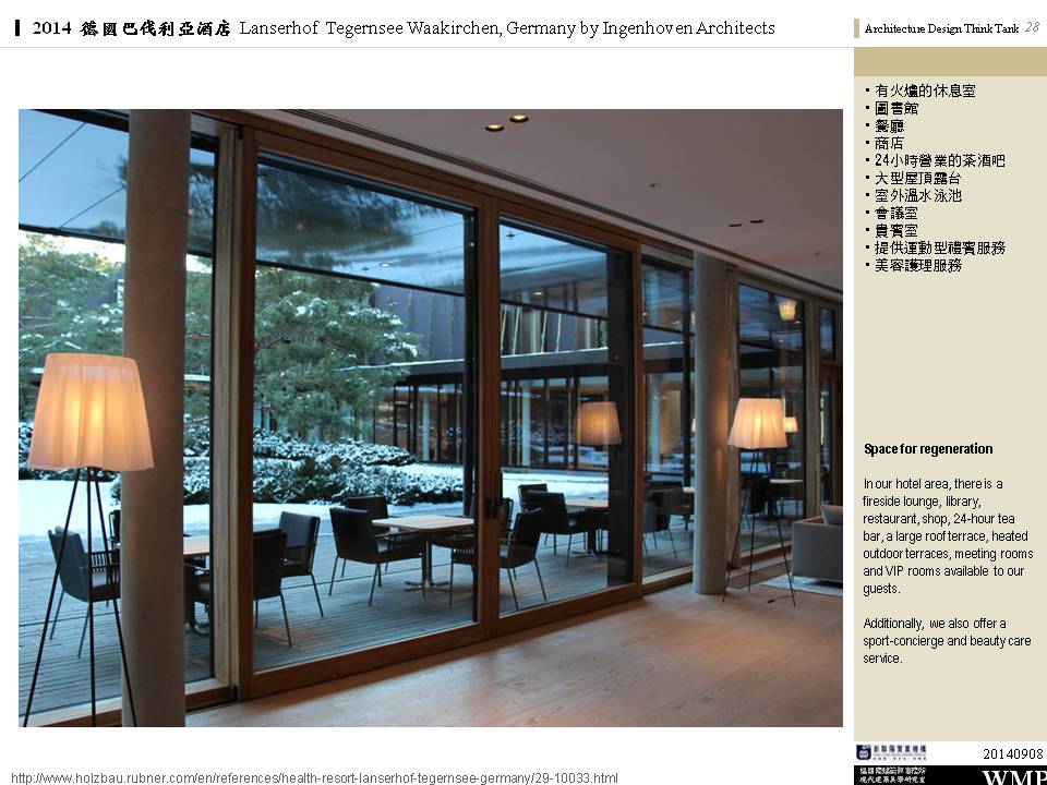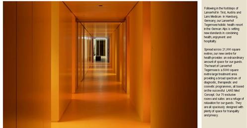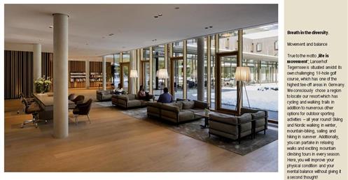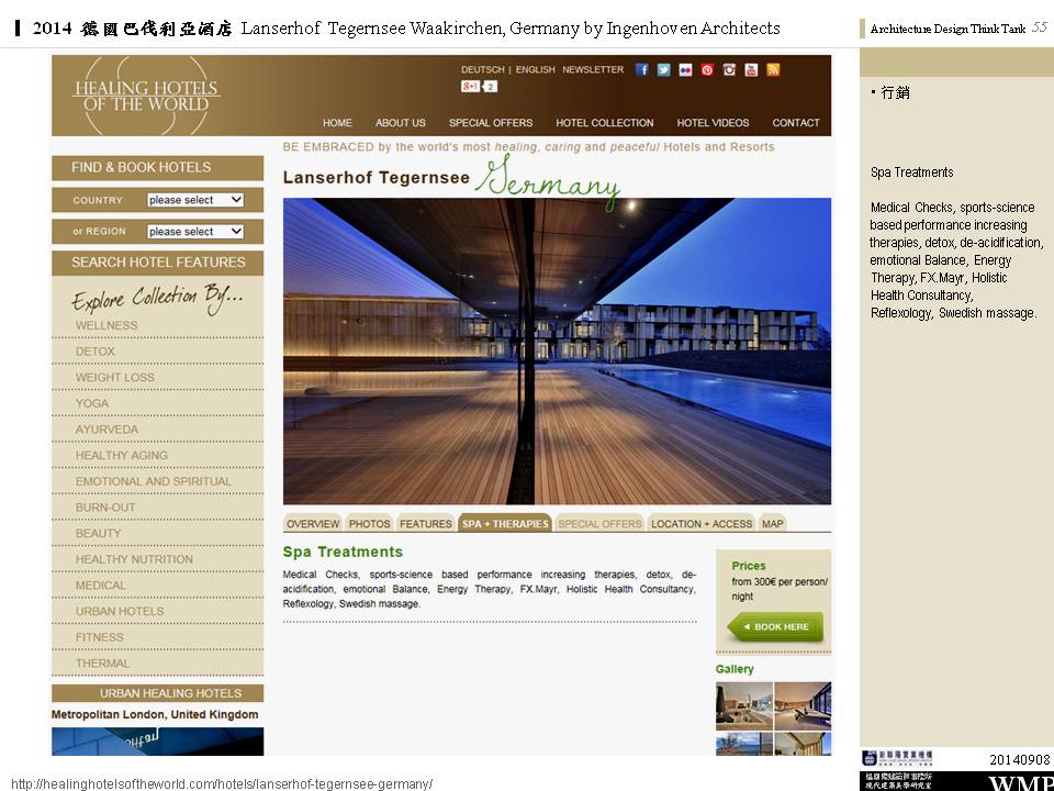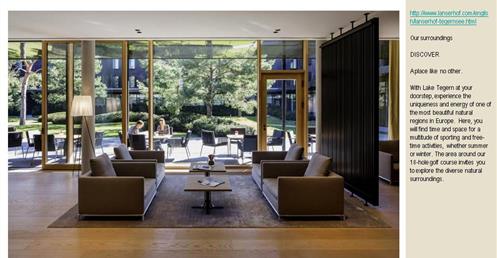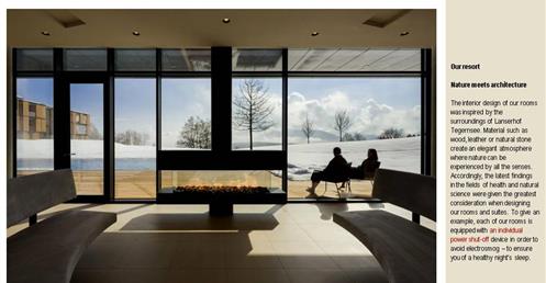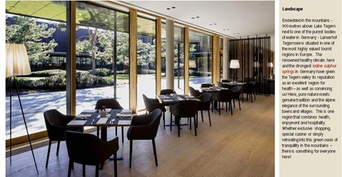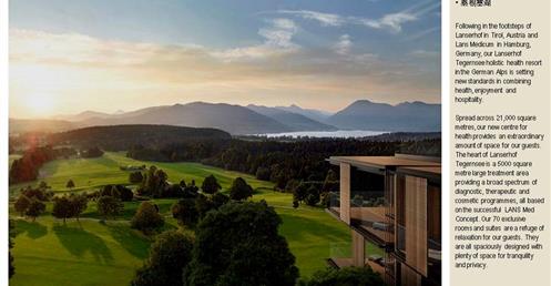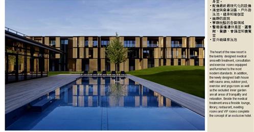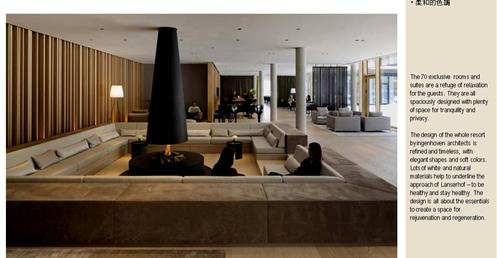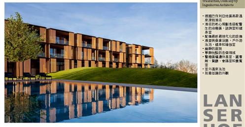→ 高級溫泉渡假酒店;森林湖泊;搭配專業的醫美團隊;建築跟室內設計刻意低調簡潔,讓旅客放鬆;