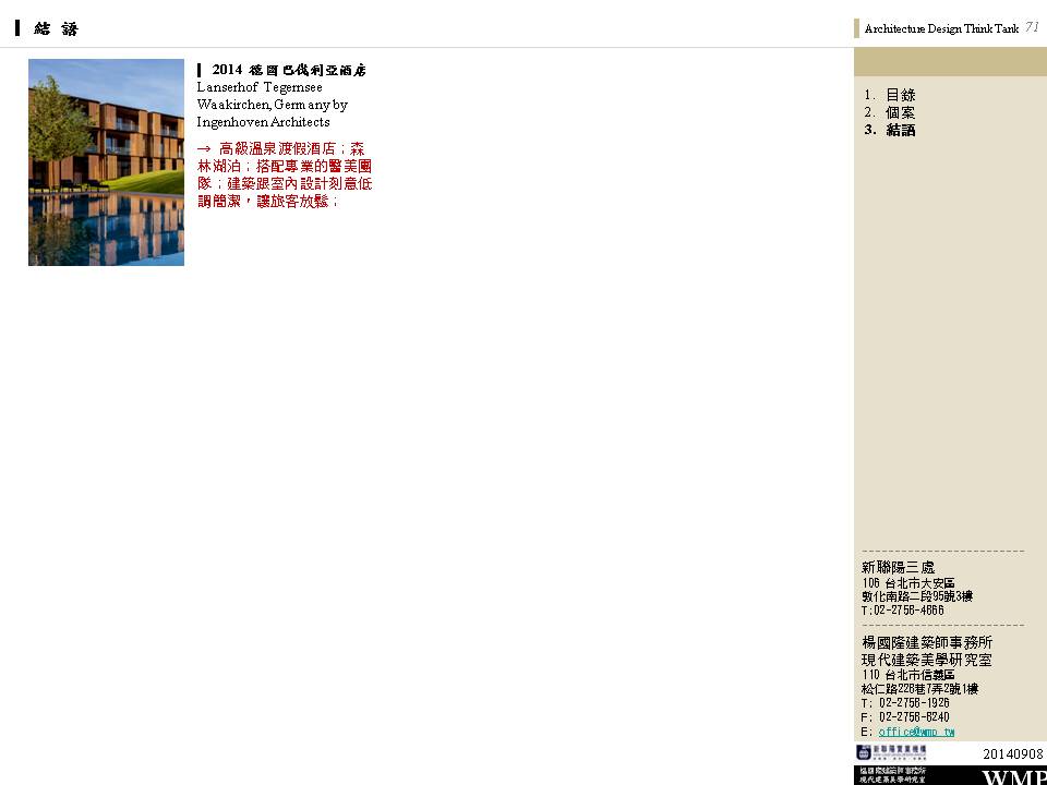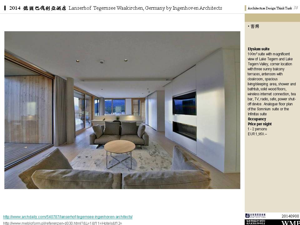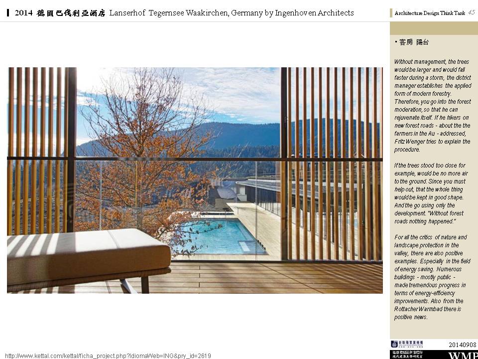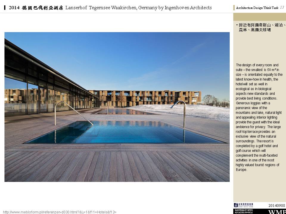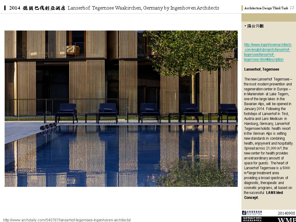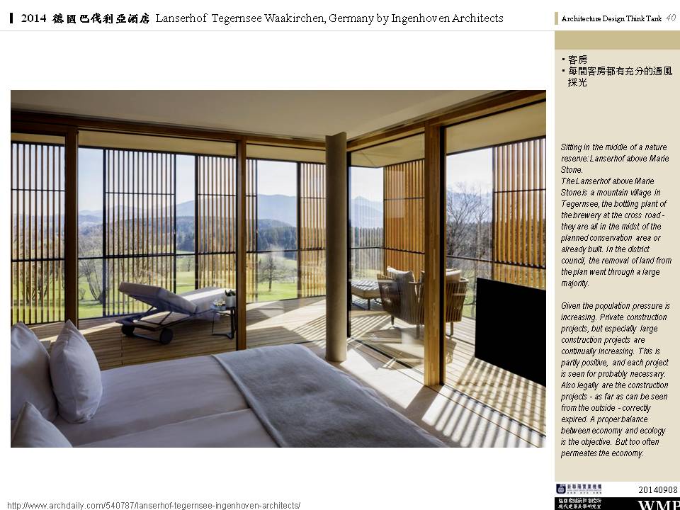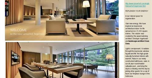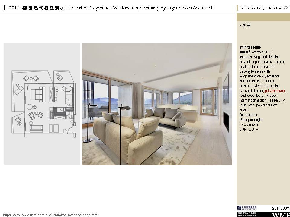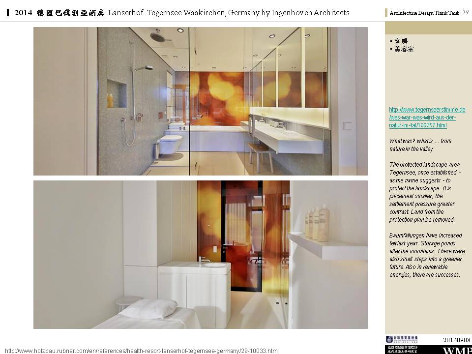 → 高級溫泉渡假酒店;森林湖泊;搭配專業的醫美團隊;建築跟室內設計刻意低調簡潔,讓旅客放鬆;