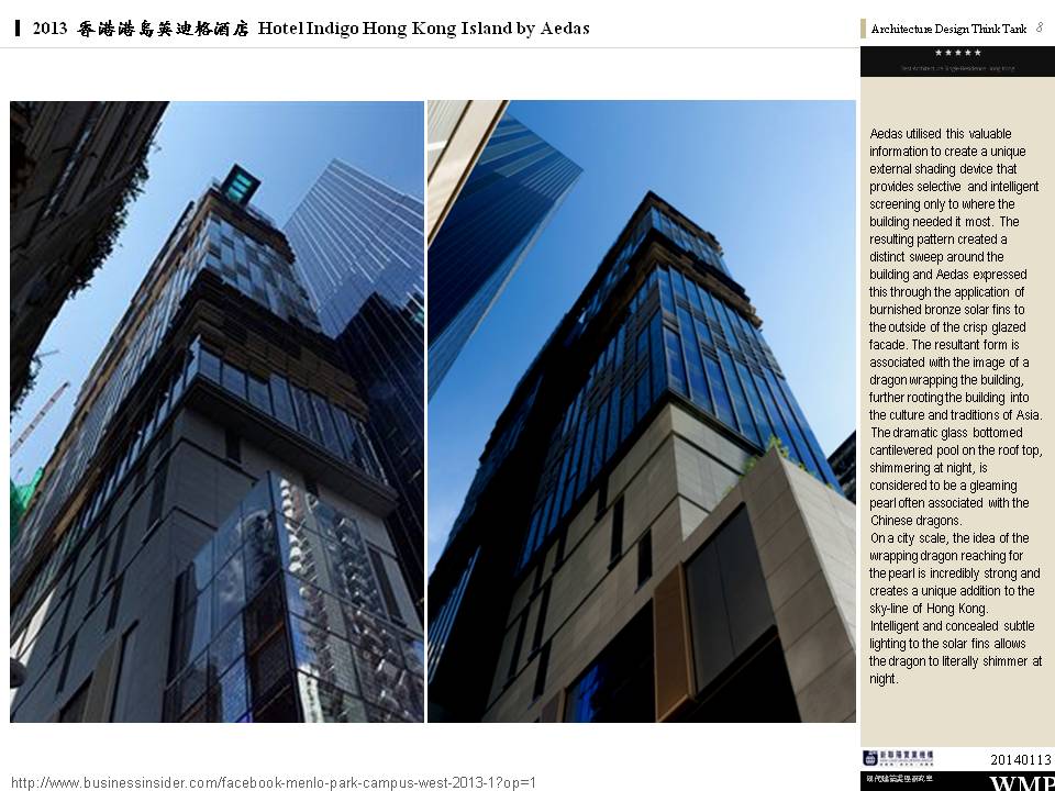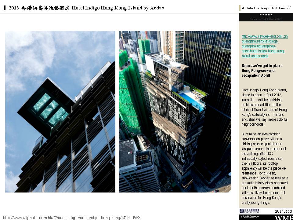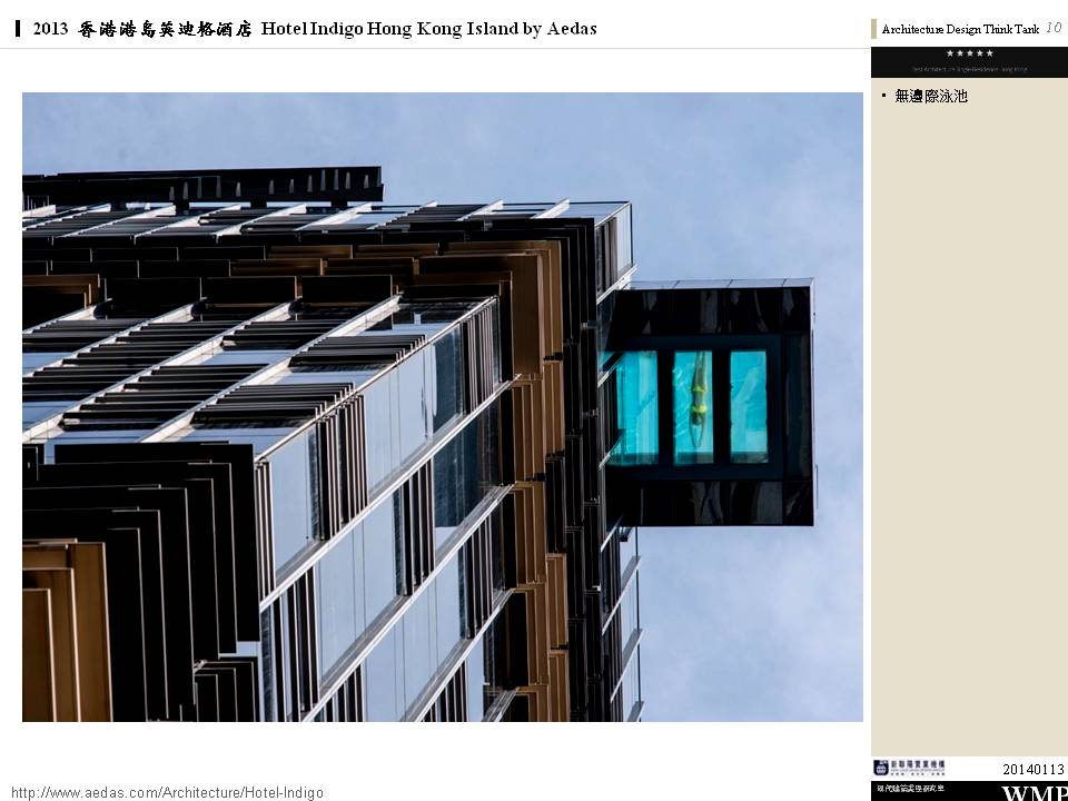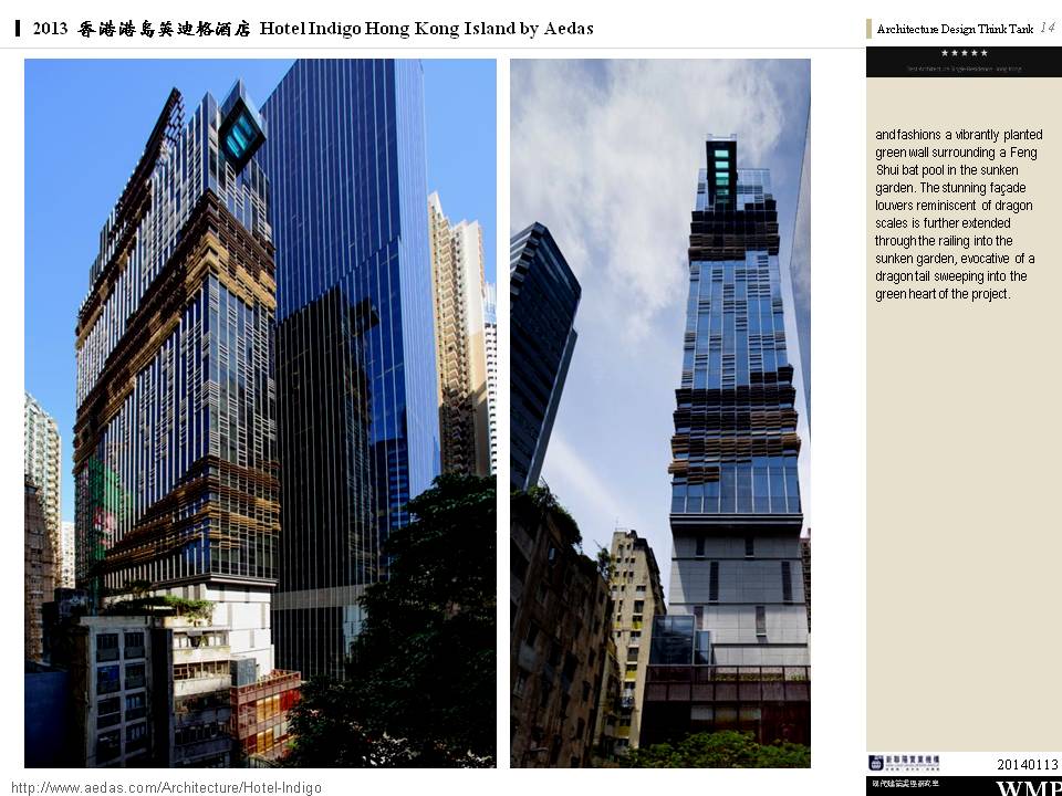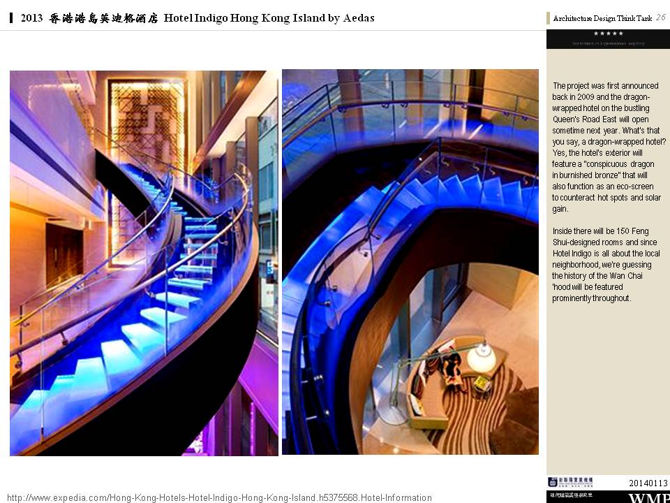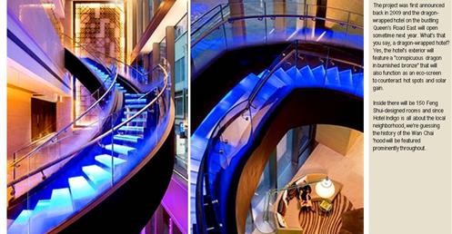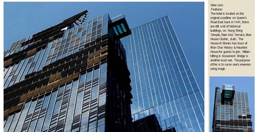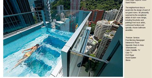 → 城市酒店、大量採用酒店基地附近的鄰里特色、人文歷史故事;外觀特色是突出的無邊際泳池、像纏繞的龍的雨遮版;