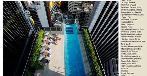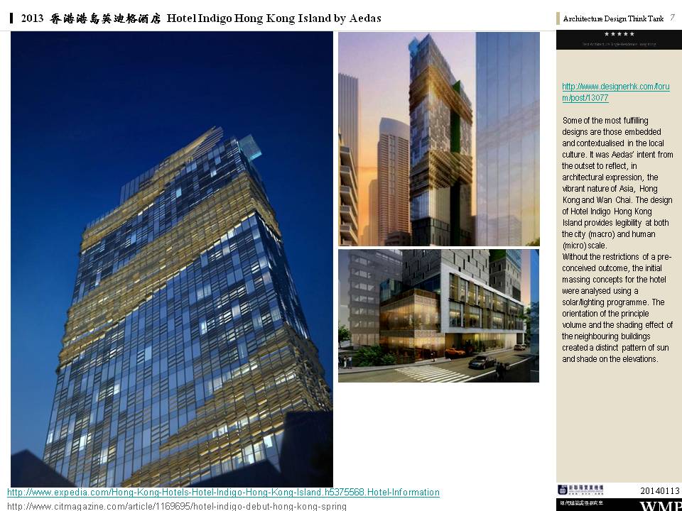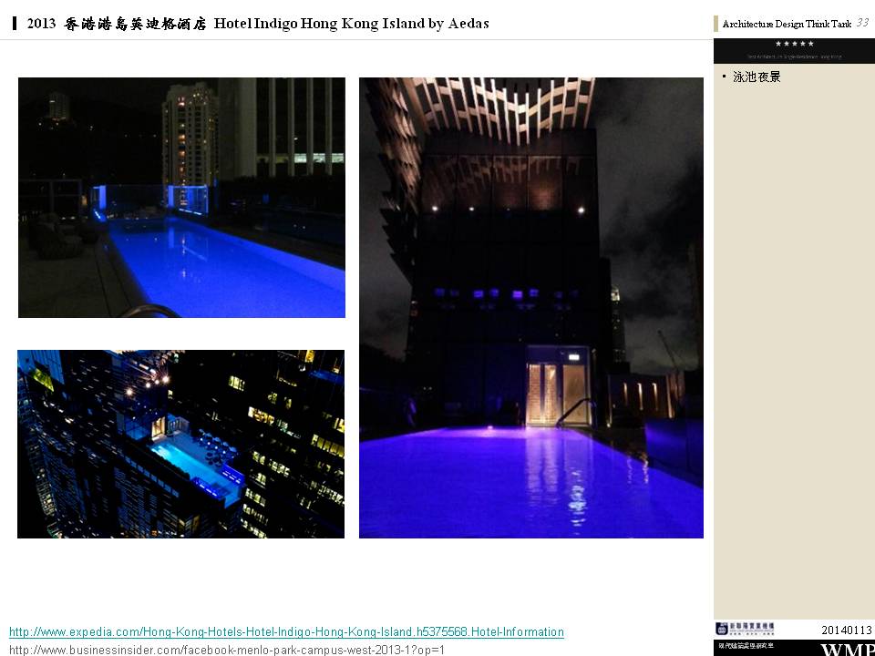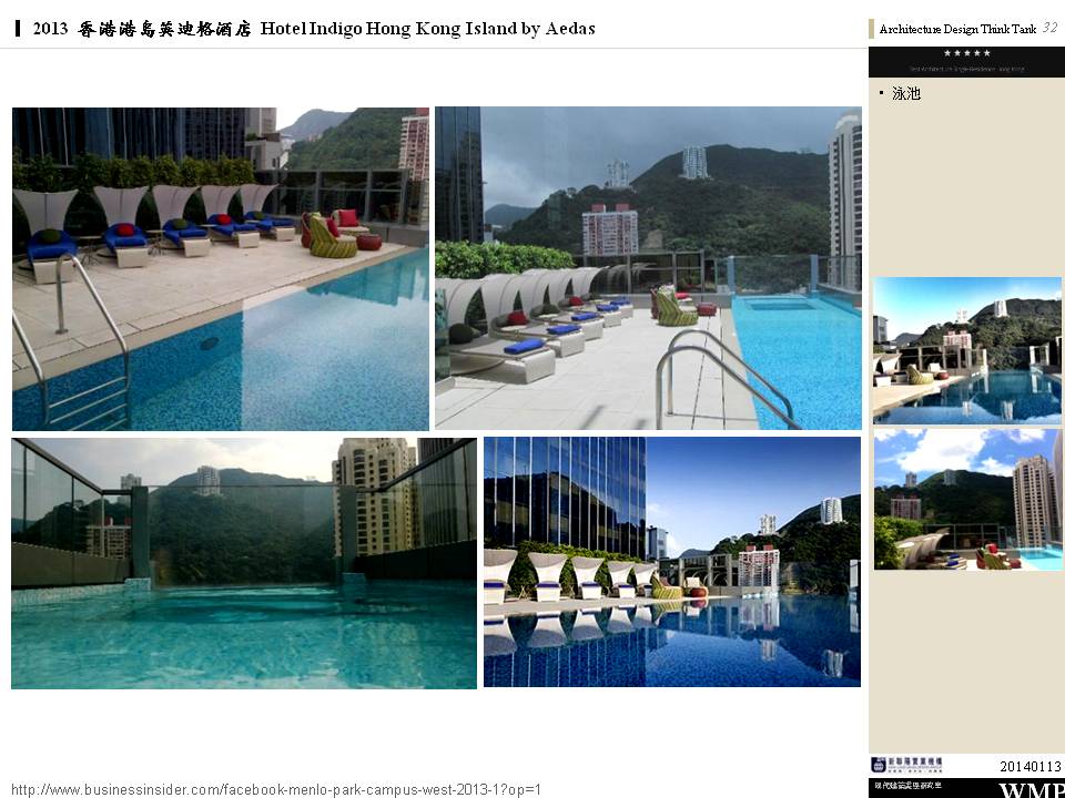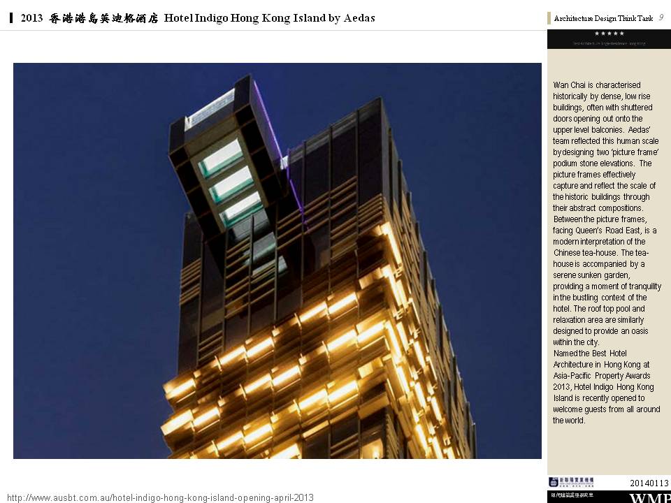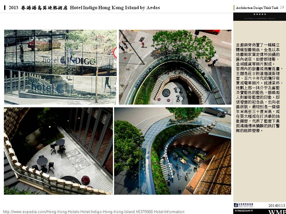→ 城市酒店、大量採用酒店基地附近的鄰里特色、人文歷史故事;外觀特色是突出的無邊際泳池、像纏繞的龍的雨遮版;