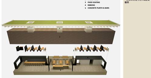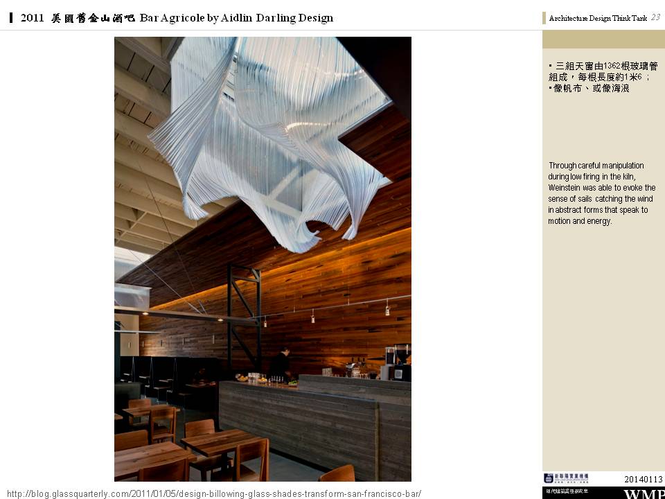 → 都市酒吧、三座由玻璃圓管組成的天窗、呈現飄逸的空間感;