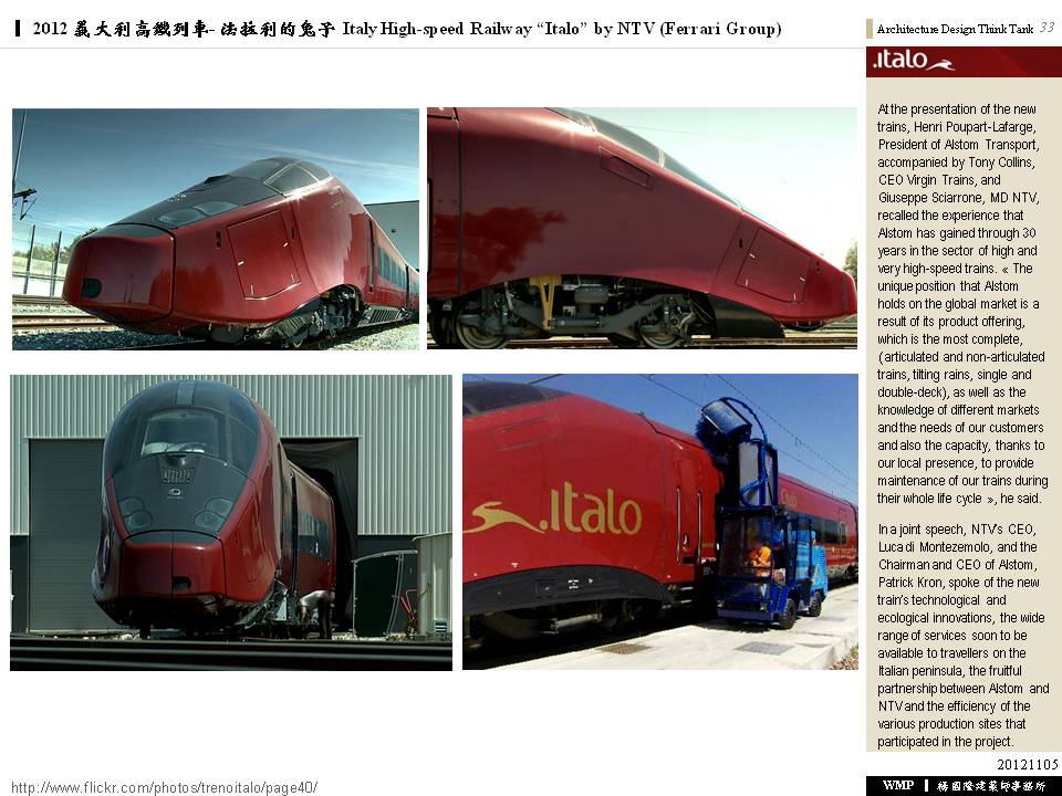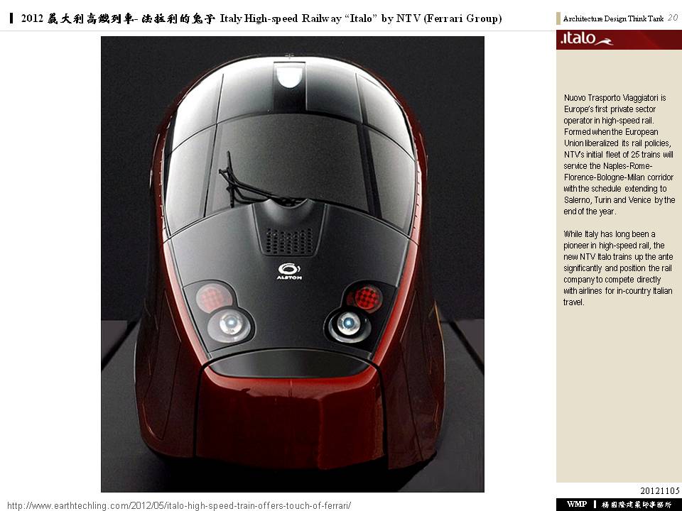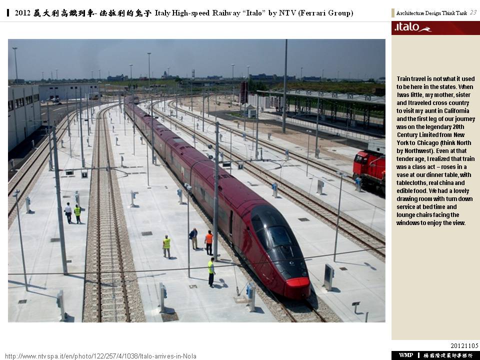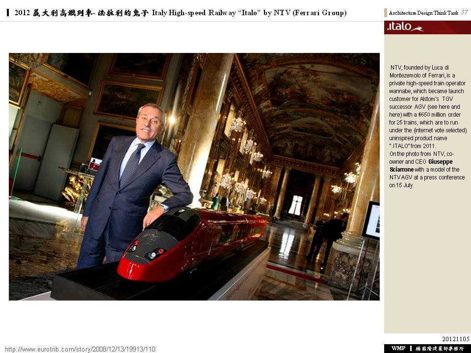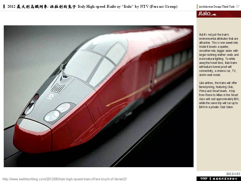 2012 義大利高鐵列車- 法拉利的兔子 Italy High-speed Railway “Italo” by NTV (Ferrari Group)