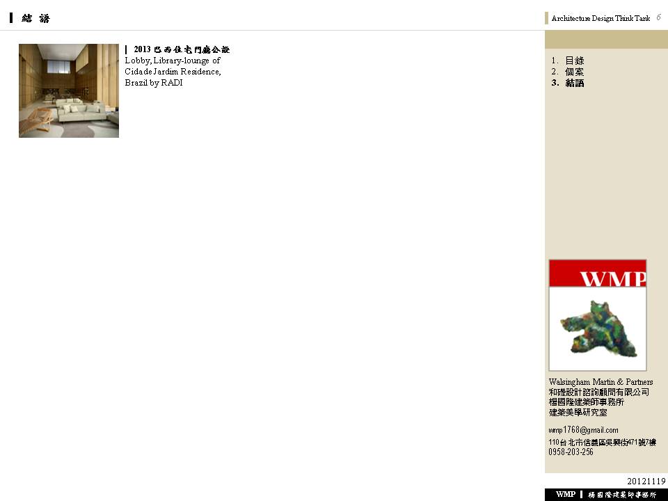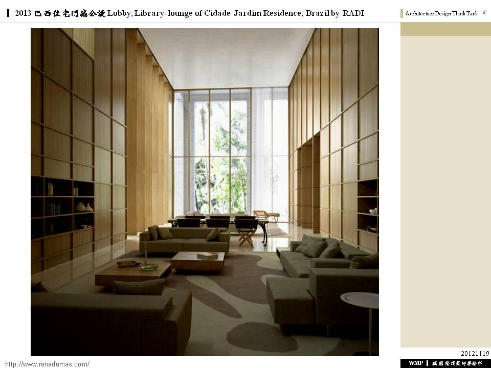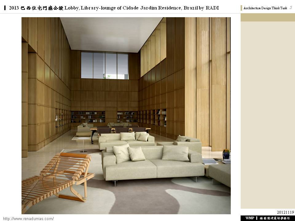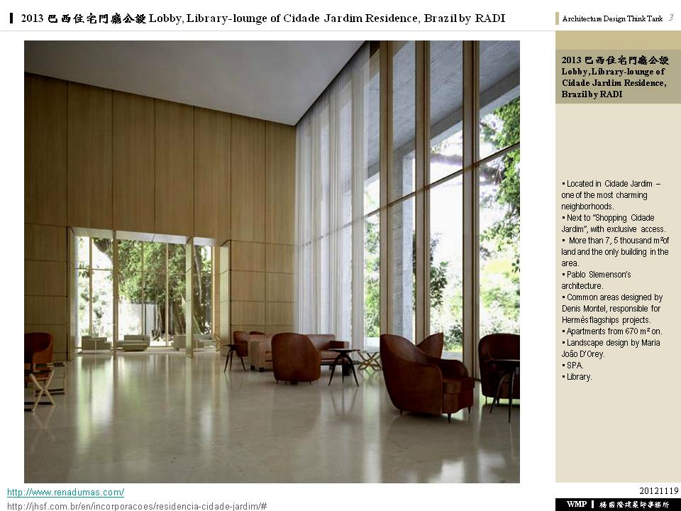 2013 巴西住宅門廳公設 Lobby, Library-lounge of Cidade Jardim Residence, Brazil by RADI