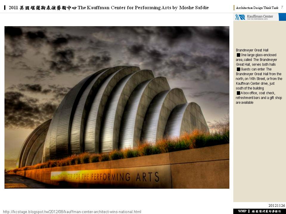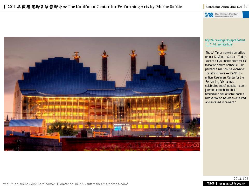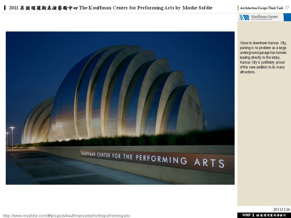 2011 美國堪薩斯表演藝術中心 The Kauffman Center for Performing Arts by Moshe Safdie
