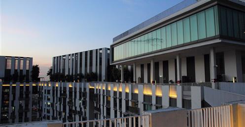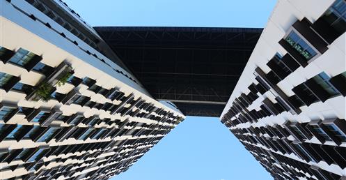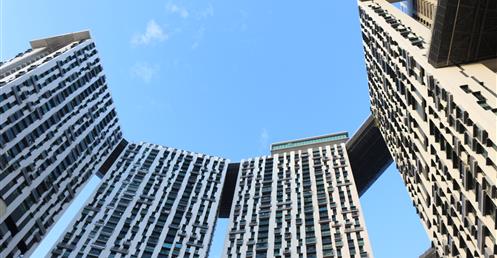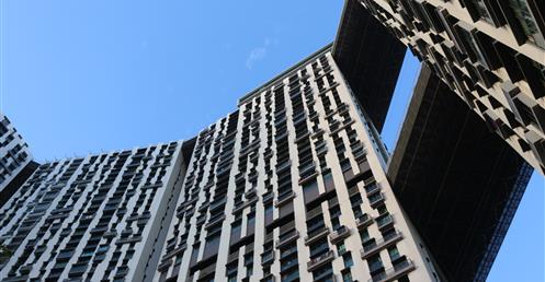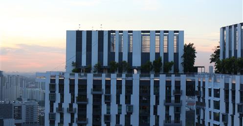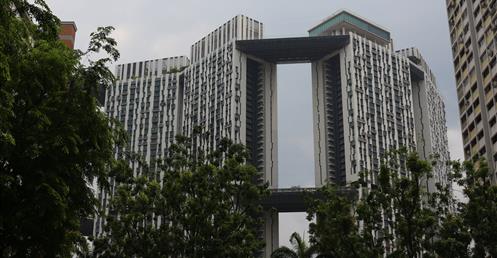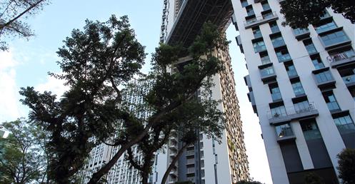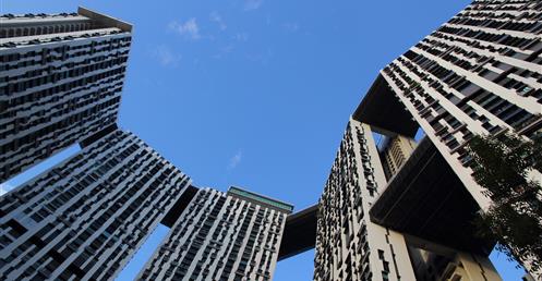 The Pinnacle@Duxton is an award-winning 50-storey residential development in Singapore's city center, next to the business district.The project features the world's two longest sky gardens of 500 metres (1,600 ft) each, on both the 26th and 50th floors. All seven connected towers are collectively the world's tallest public residential buildings.