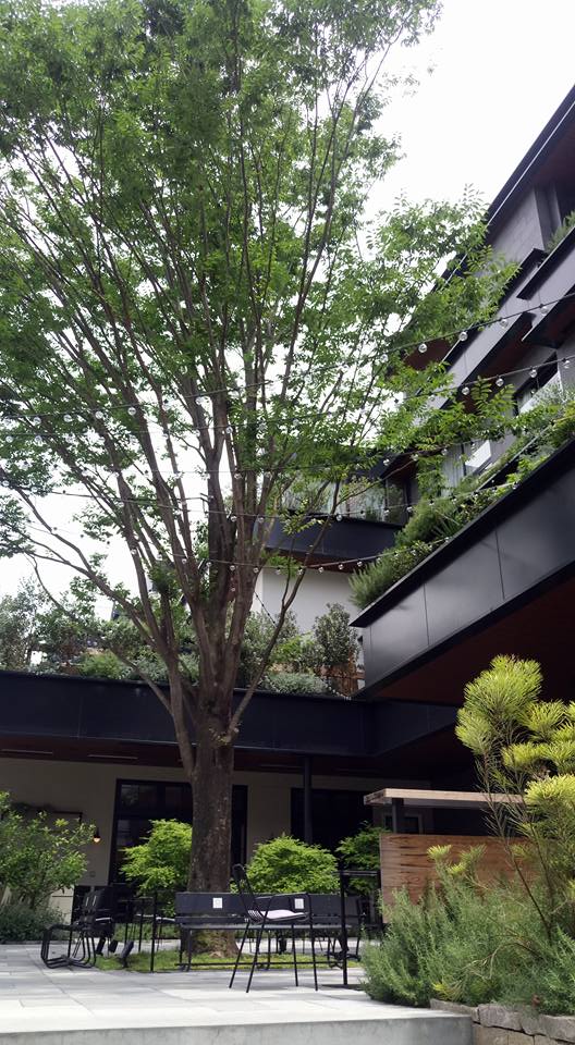 Craft coffees and cocktails are served to locals as well as guests in the lively lounge and terrace, which is set around the base of a leafy Zelcova tree alongside large white cushions made from refashioned boat sails. Other highlights include its restaurant, Kitchen, complete with a large chef’s table at the back, a small kushiyaki grilled meat outlet, a pop up space, four banquet rooms and a clean-lined wooden rooftop chapel (guaranteed to be bit a hit in wedding-crazed Tokyo).