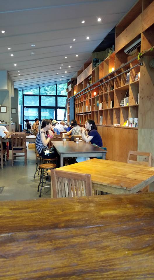 餐廳1F為吧檯、餐飲、廁所、除藏庫等空間、2F為挑空座位、佐以圖書室空間……