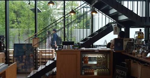 唯一一家餐飲店與災害時物資儲存庫、公共廁所等設施合一建造、建立餐飲營收回饋地區基金的制度、作為公園營運管理的自主財源……