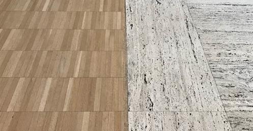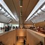 Kahn envisioned a museum with “the luminosity of silver,” illuminated by “natural light, the only acceptable light for a work of art, [with] all the moods of an individual day.” He achieved this through a design with “narrow slits to the sky” to admit daylight and pierced metal reflectors hanging beneath them to diffuse and spread the light from its hidden source onto the underside of the cycloid-shaped vaults and down the walls. Courtyards, lunettes, and light slots introduce more light, varying quality and intensity. Architectural space and light are further unified by the choice of materials: deftly handled structural concrete is juxtaposed with Italian travertine, fine-grained white oak, dull-finished metal, and clear glass. Kahn characterized the Museum building as inspired by “Roman greatness.” The classical appearance of its porticos, arches, and vaults is often cited.