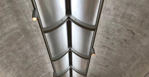 光線,是路康設計中一個很重要的元素。達拉斯在金貝爾美術館中很明確地運用「光」及「簡單空間」這兩個元素。美術館建築物外觀嚴謹、對稱,在內部採用尺度較高大的半筒穹隆式天花,將外部自然光線自頂部引入後,以漫射的方式呈現出空間的豐富性和新穎性;在連續的拱頂以相同的格調重複出現時,構成空間主體的薄殼被採光中庭和可以靈活變動拆換的展板所分隔,光所構成的序列在九米多長的空間中行進,順勢引導清水混凝土上的光,引發出光的節奏感。