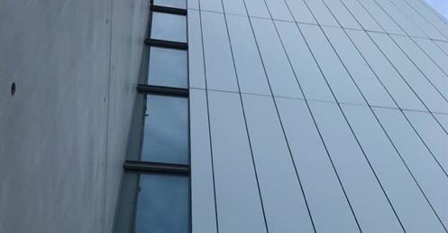 ……新館由義大利建築師Renzo Piano所設計,整體運用大膽且非對稱式的設計手法,充滿菱角與傾斜的骨架、鋼構及大面的玻璃。……