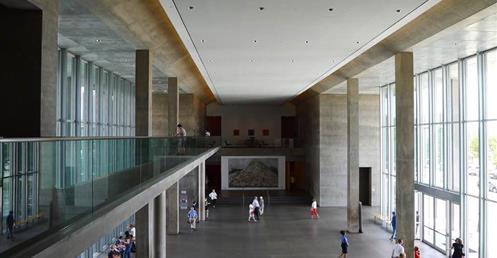 大懸挑的Y形柱及對照希臘神殿圓柱的典型平面,其中有其共同之元素可以研究細讀;在外部空間的另一個狀態是前後框景的層次交疊與立面虛實穿透的層次變化,更是重點精華所在。…….