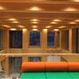 This is an office building located in Osaka. Following a change in the Building Standard Law from specification codes to performance codes, an attempt was made to ensure the required fire resistance by covering the steel structure wood. This is a so-called “flammable barrier” design. The wood used also acts as a finish, allowing costs and resource to be minimized. Following the results of experiments, 25mm+25mm thick particle board was used. The building structure is made up of one-story-high Vierendeel trusses on every other floor which span 22 meters. Small rooms are located on the floors with trusses, and large rooms such as the showroom are placed on the column-free floors. The building has a glass curtain wall and the system used can be clearly seen even from the exterior.