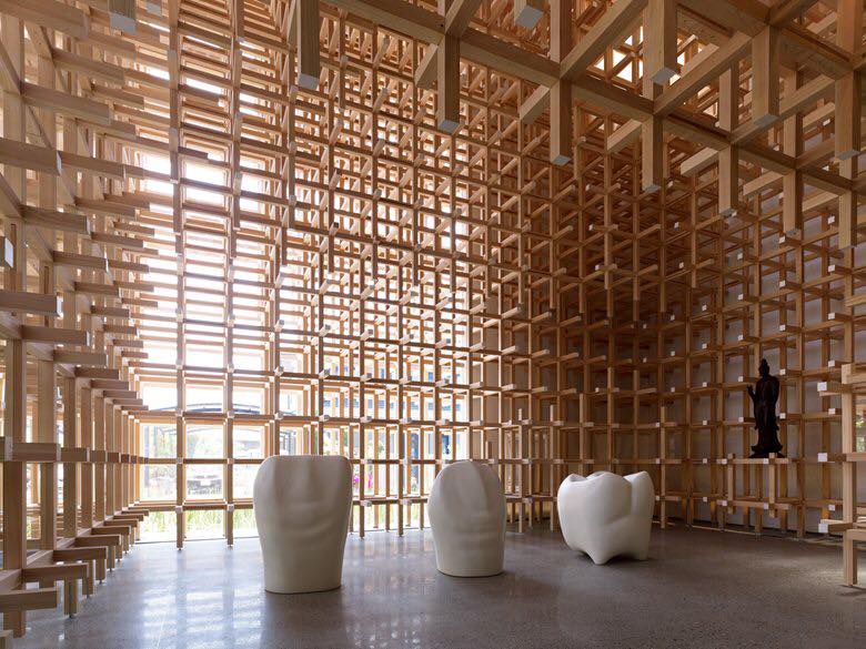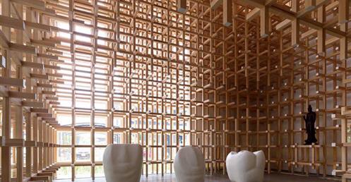 他們熱衷木構,在名古屋工廠還邀隈研吾設計了一座木棍搭接的展示館。