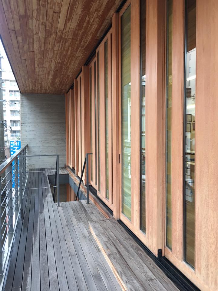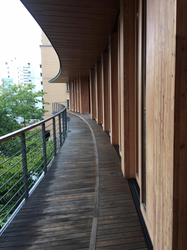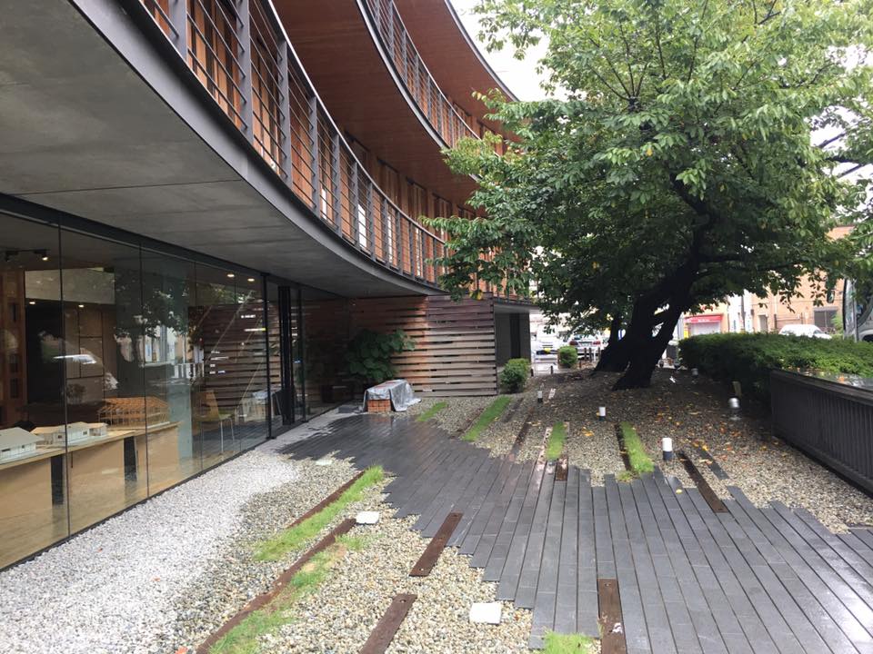 因此王銘顯等建築師在一位日本人-西本幸夫爺爺的鼓動下,成立了台灣本之家之種子研究會。這回就特別參訪了歯科医療機器メーカーの大阪営業所ビル(普立茲克獎得主丶日本坂茂)及大阪木板仲買協會館(竹中工務店)-2015年「日本建築學會賞」最佳建築。