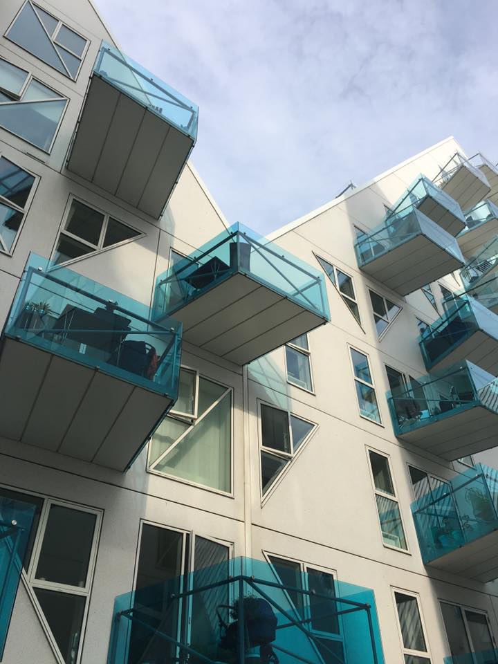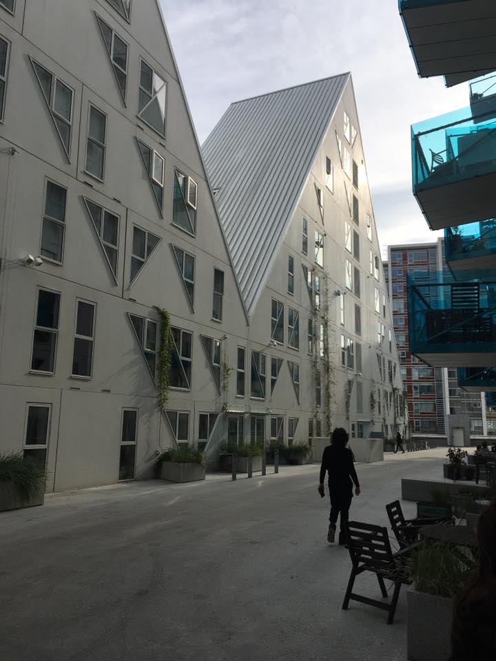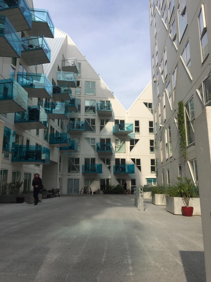 這組JDS(Julien De Smedt Architects)的年輕人,只處理造型,型從立地條件在海岸第一排發想而來。其次是滿足開發商的基地簇群而出現的連楝條狀排型,以及「冰山」的視覺效果而已。