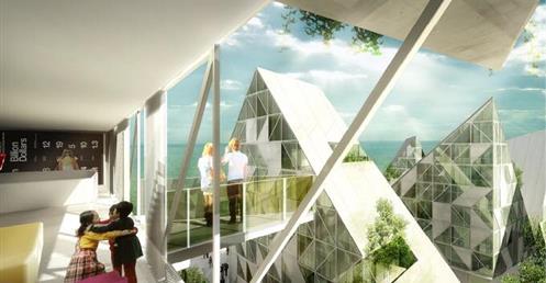 JDS說:建築設計考慮場地獨特地點和海景,設計主要難點在於密度,平面面積與限制層高的衝突,以及盡量不遮擋樓間眺望海景視線。所以採取這種「峰」和「谷」的形式,以滿足樓間採光和對濱海視線的需求,並尊重場地特質。