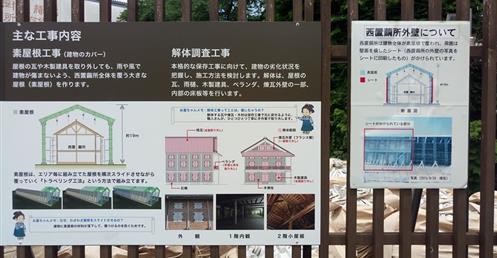 Besides carrying on general disaster prevention works and conservation work of West Cocoon Warehouse while setting up facilities such as toilets within about 5 years, we also aim at maintaining all the facilities within about 30 years.