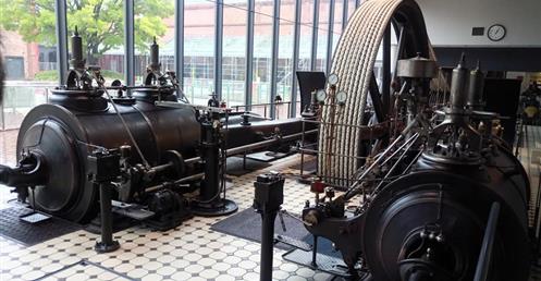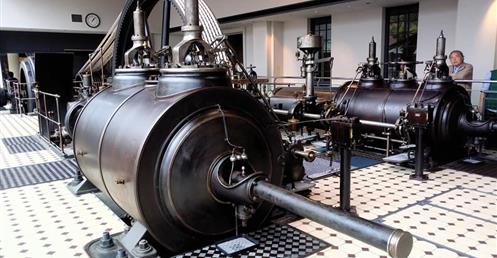 After its manufacture in 1898, this steam engine was used in a German spinning mill. It was modified in 1902 to generate electrical power and moved to a saw mill near Stuttgart.
