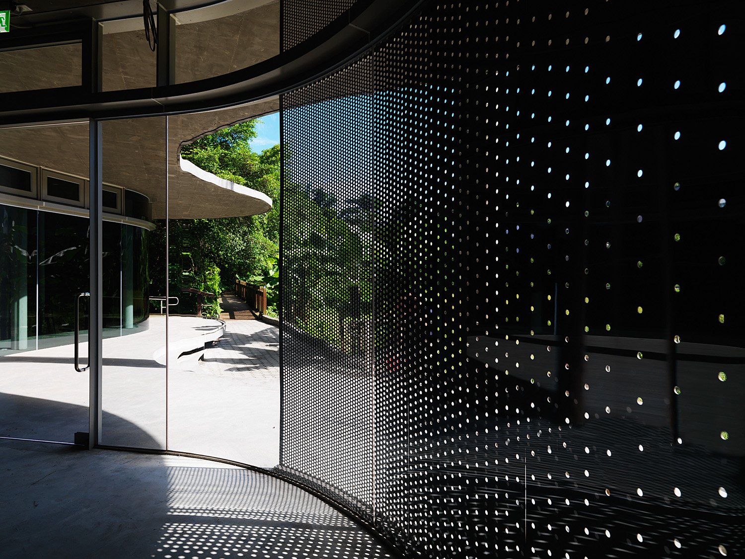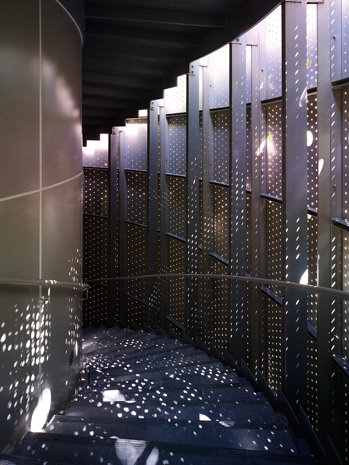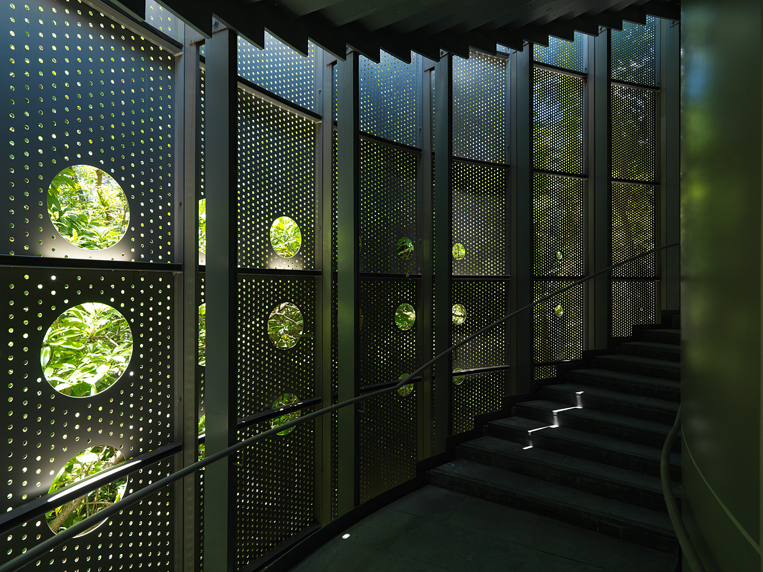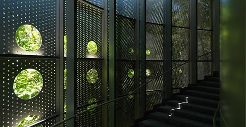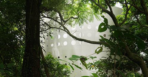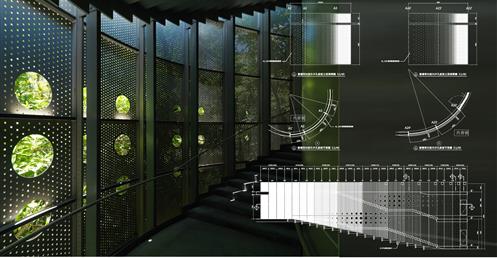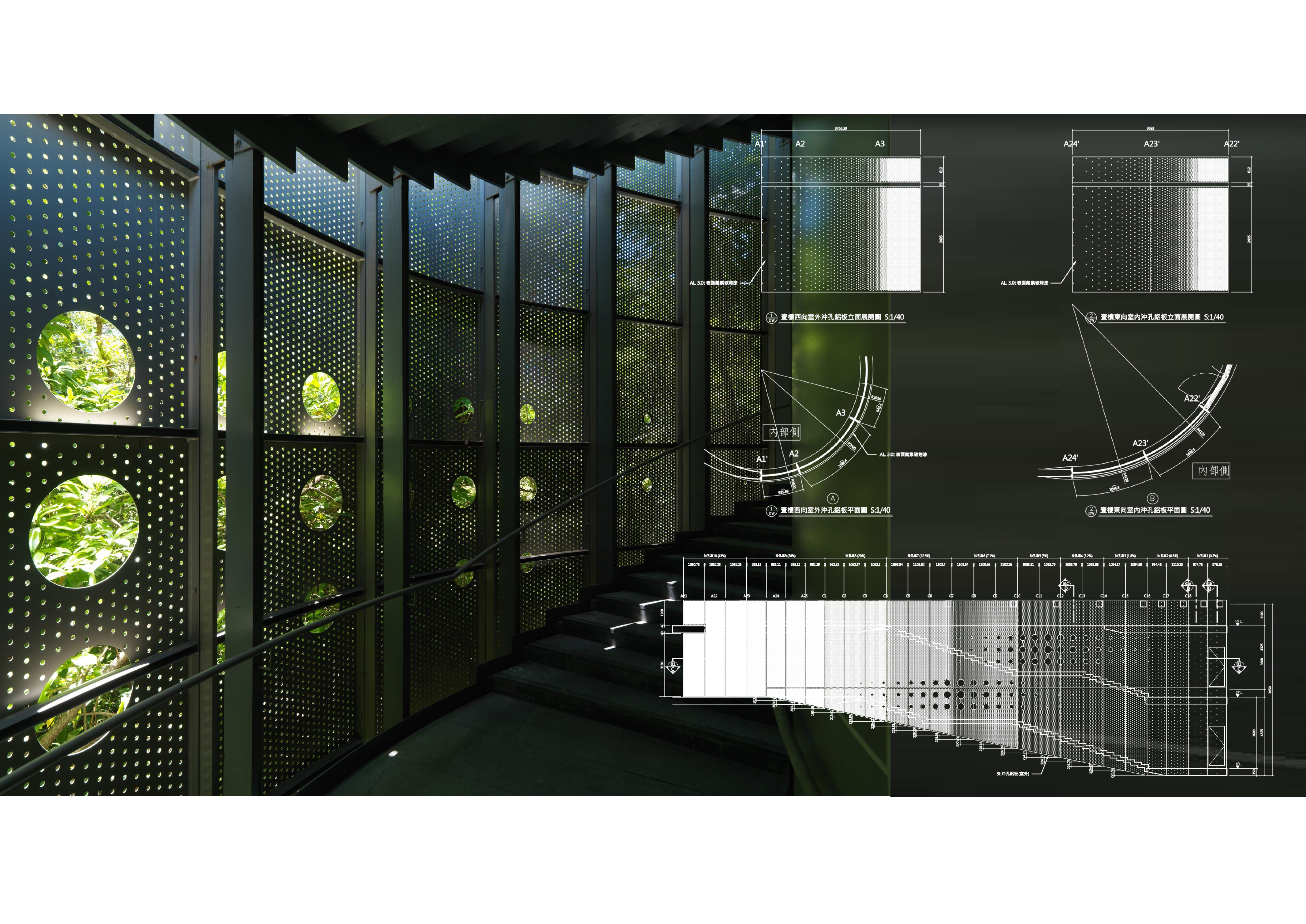 各層誇張造型不一的出簷版,除有西面遮陽效果外,亦有表達自由、每一植物造型皆不相同之意。