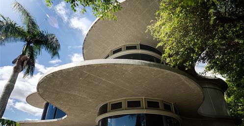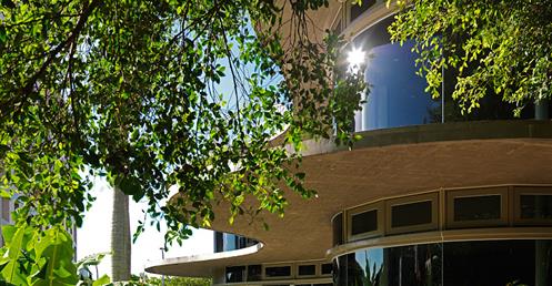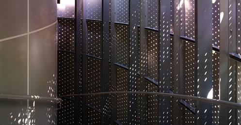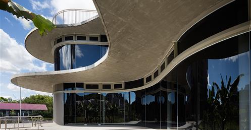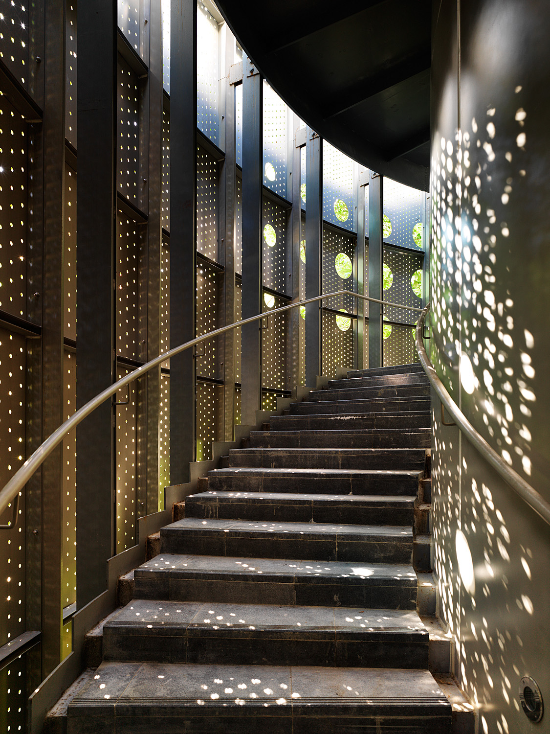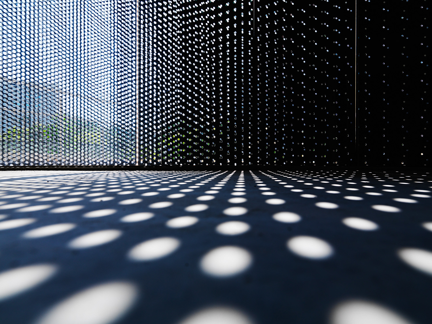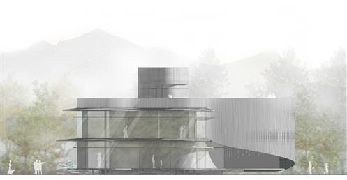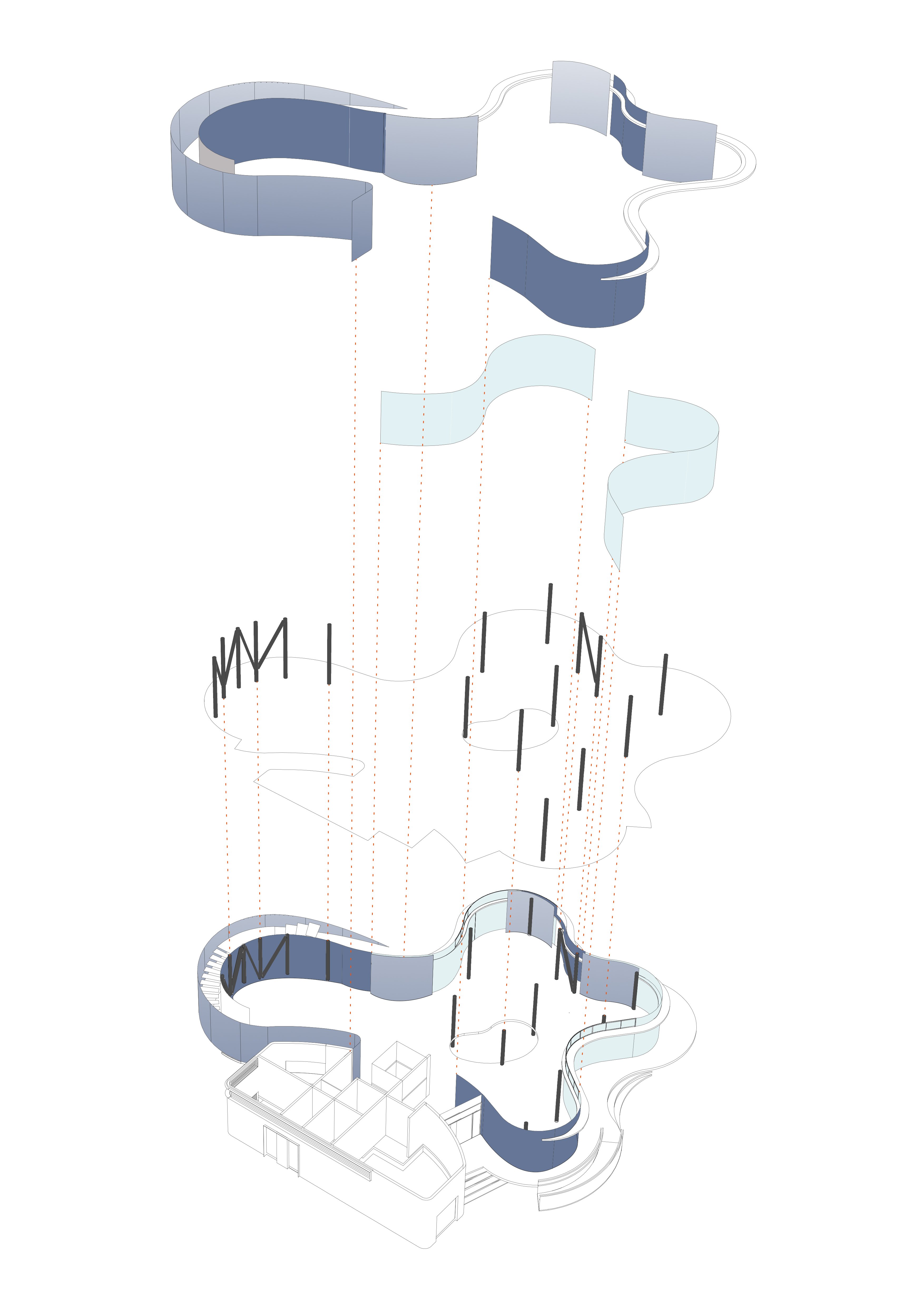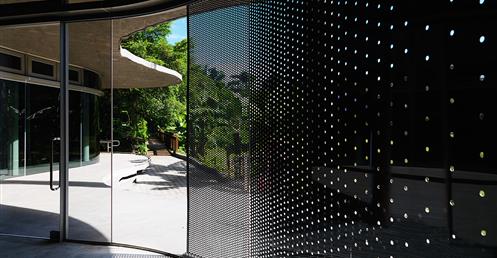 各層誇張造型不一的出簷版,除有西面遮陽效果外,亦有表達自由、每一植物造型皆不相同之意。