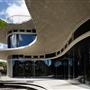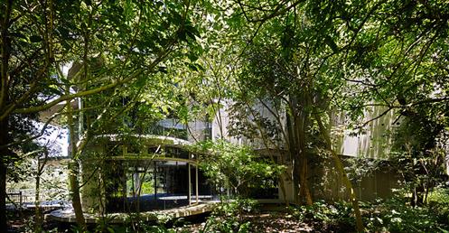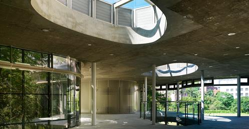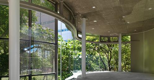 建築與景觀的區別也模糊了,為保存既有老樹,空間因應隨機變形而為樹林所圍繞,輔以挑空中庭植栽,景觀悄然入室,視野也延伸出去。觸手可及的樹木,又成了生動的展示。