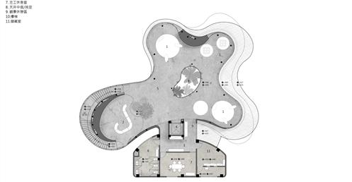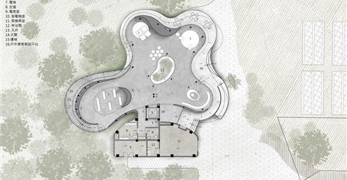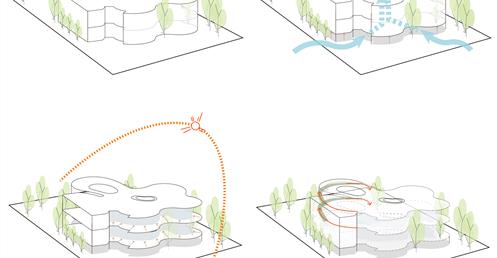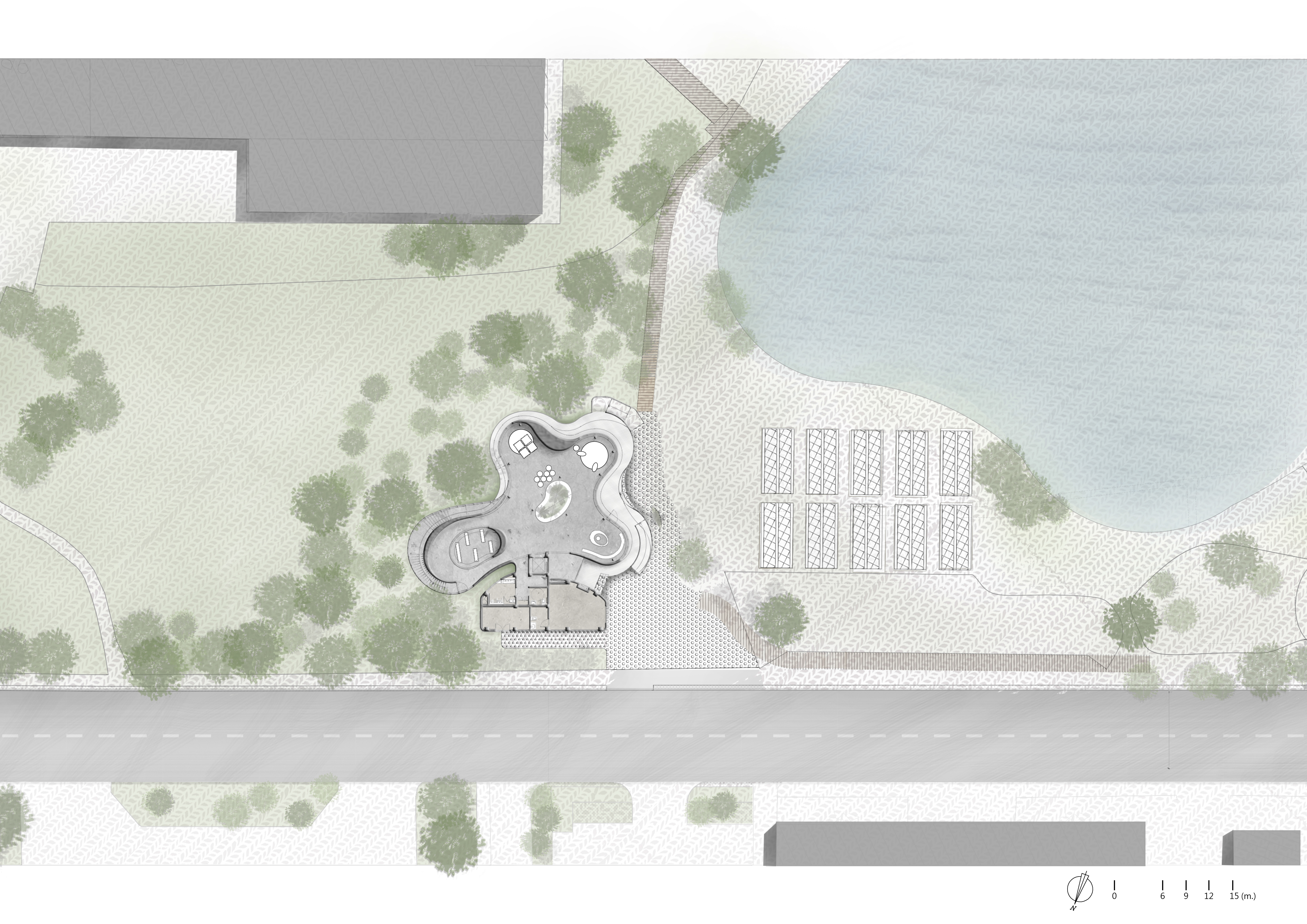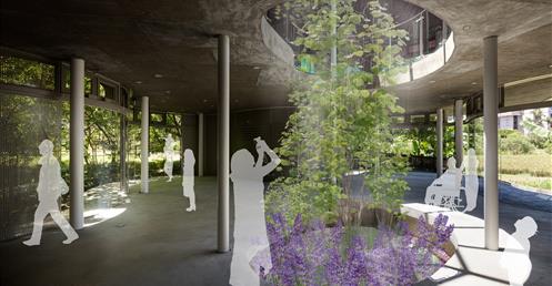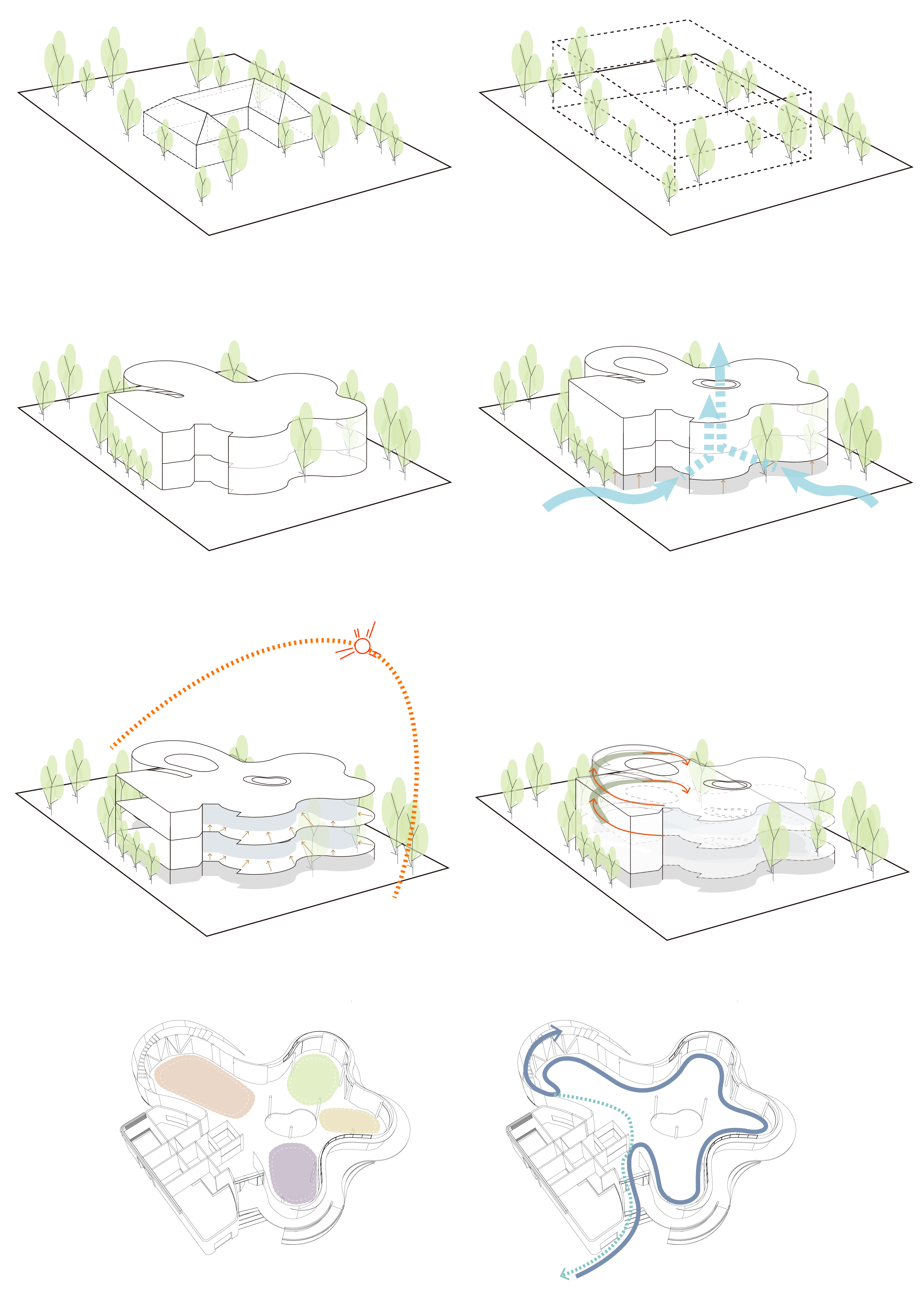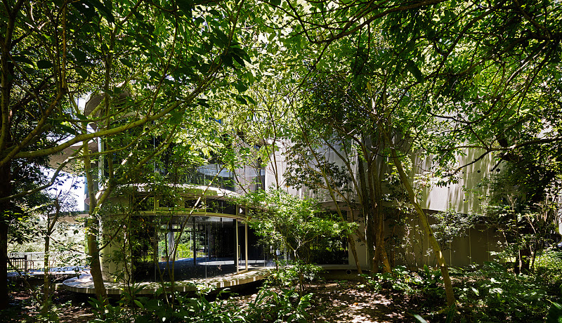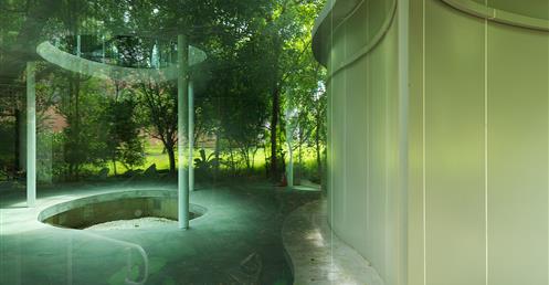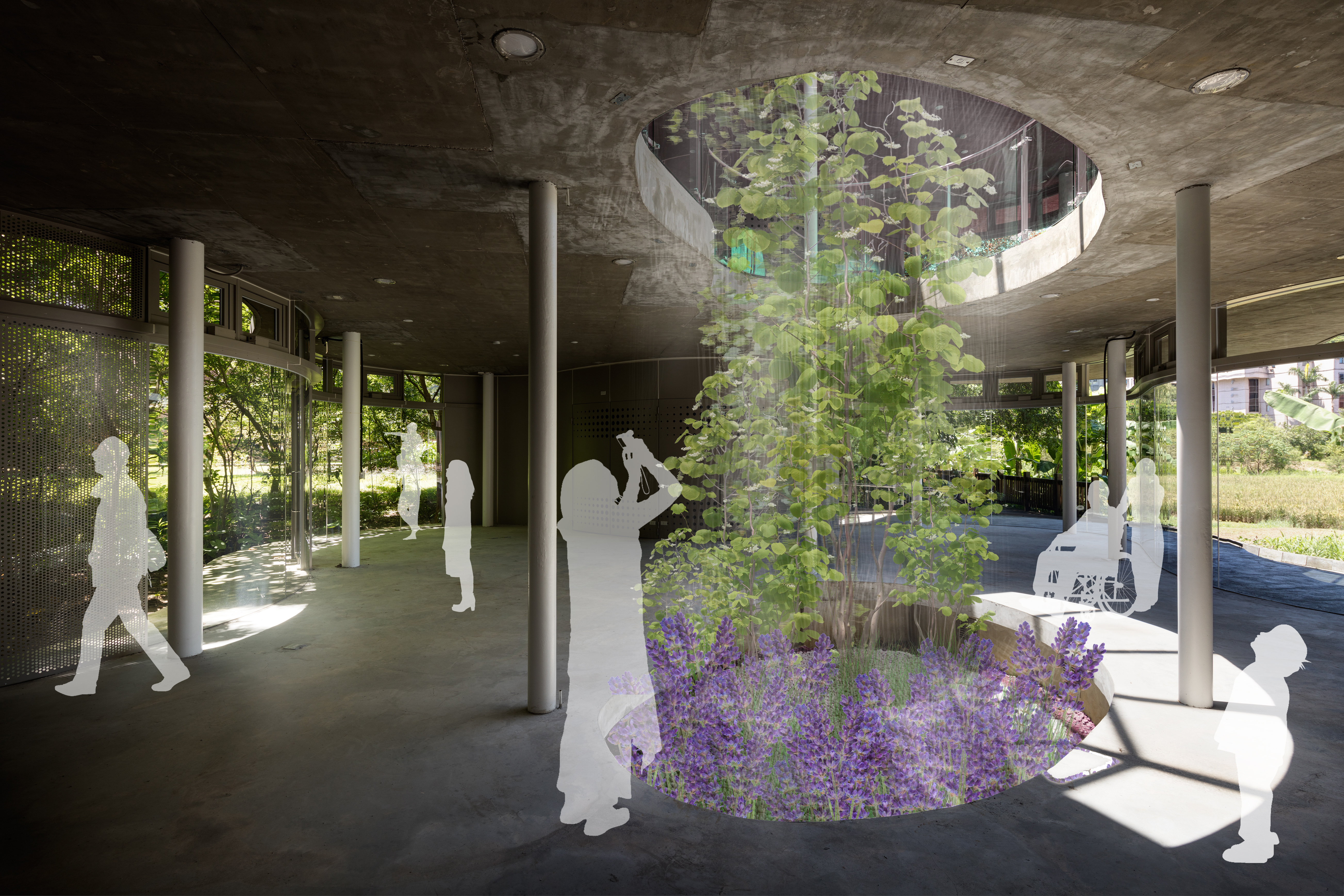 - The atrium lights shine in most of the rooms, layers of greenery are brought in and the natural ventilation circulates through the pavilion. These elements make one perceive the surrounding of nature effortlessly.