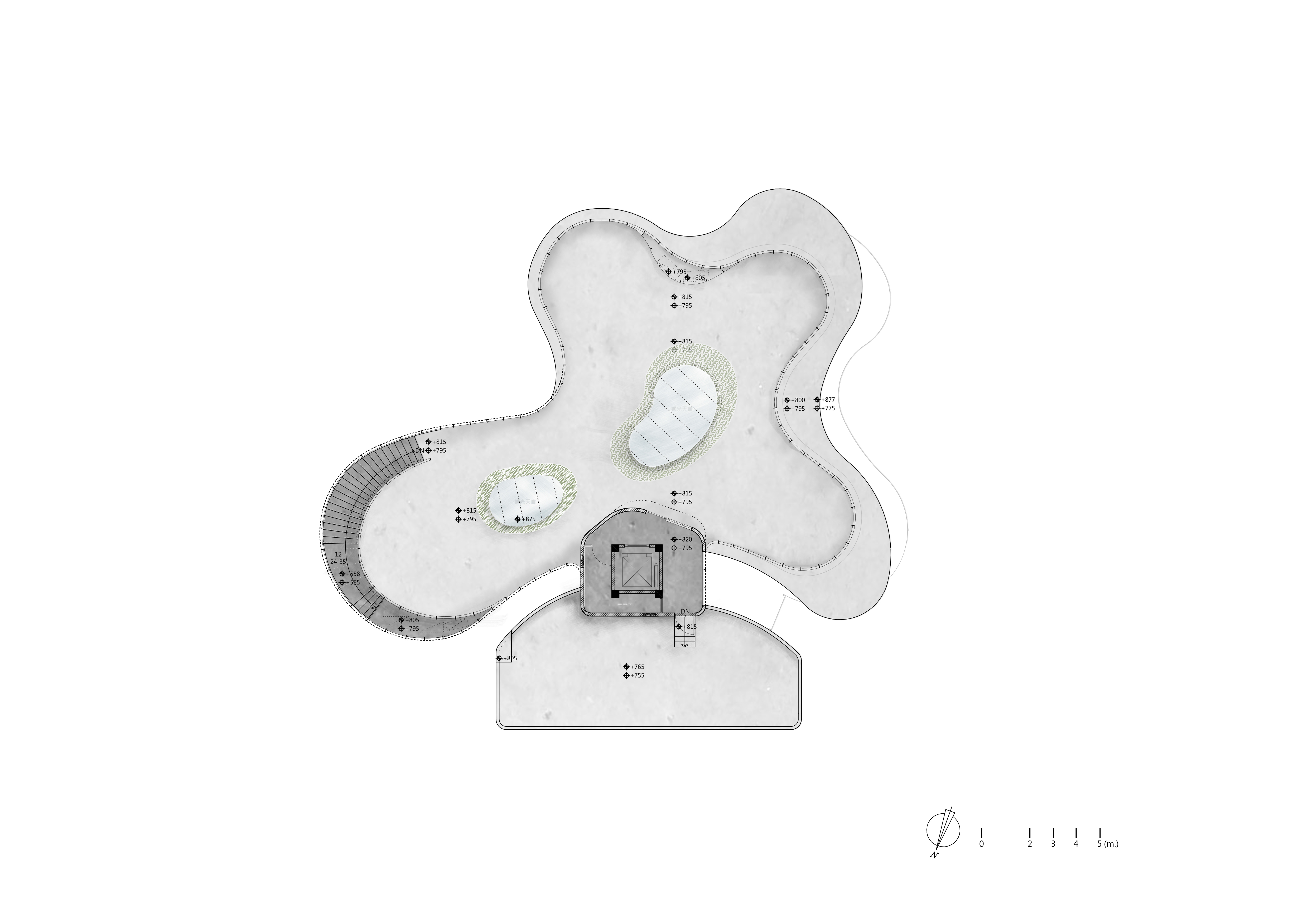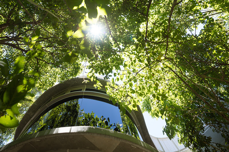 In respect of the veteran trees, organic layout morphed accordingly to minimalize the impact upon them. Potted atriums bridge the peripheral woods and extend the foliage view. Plants within reach are yet another vivid display of nature.