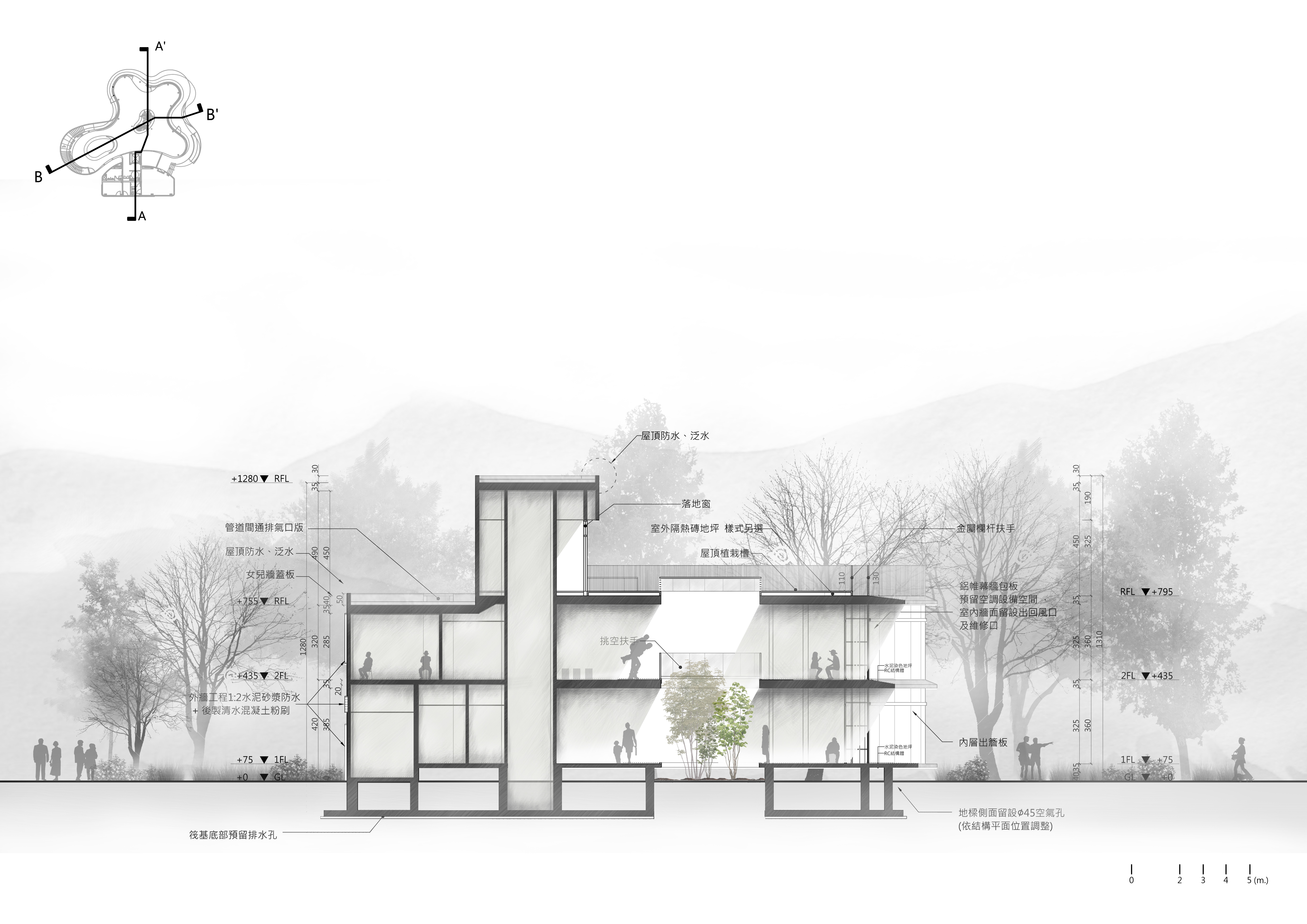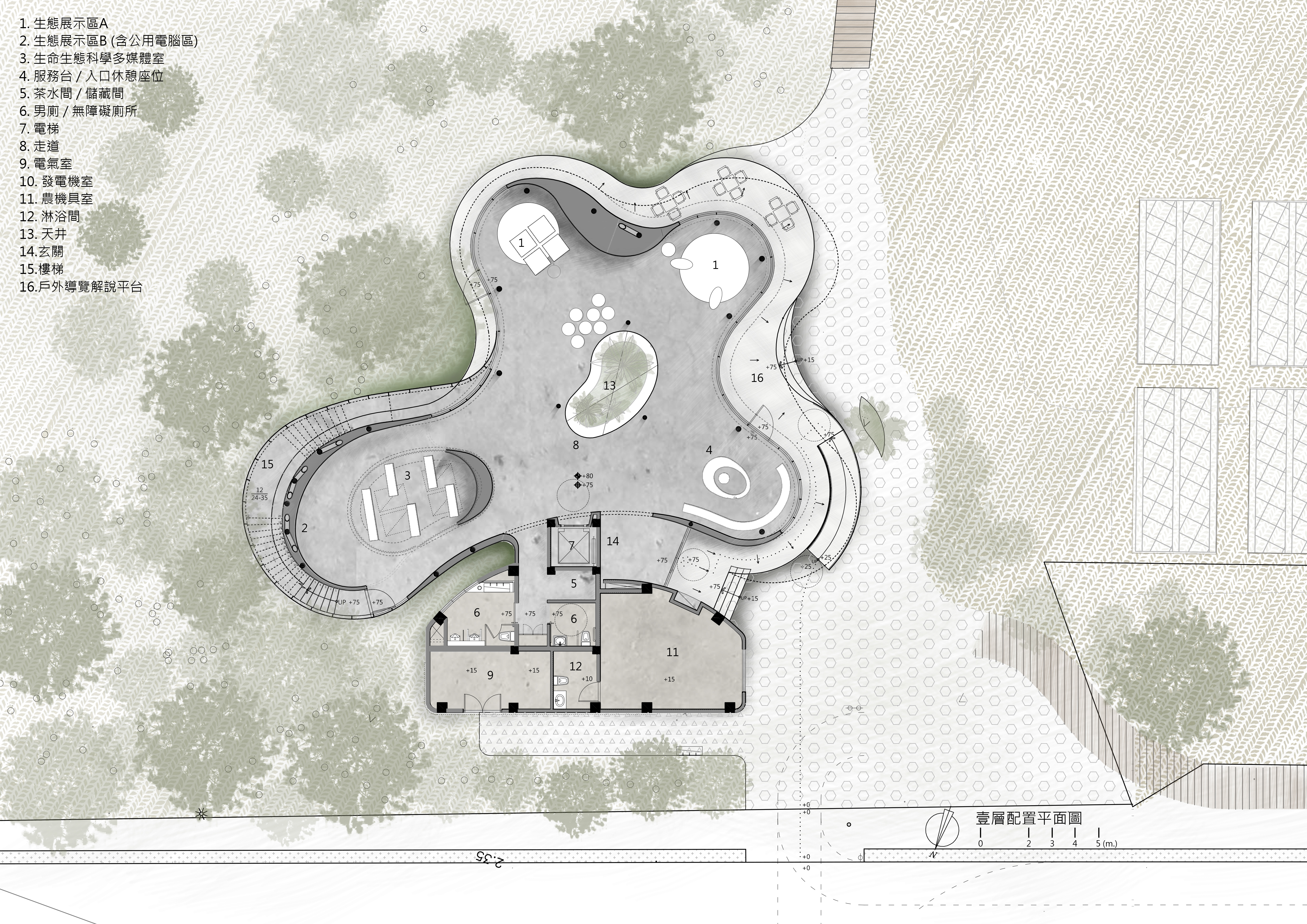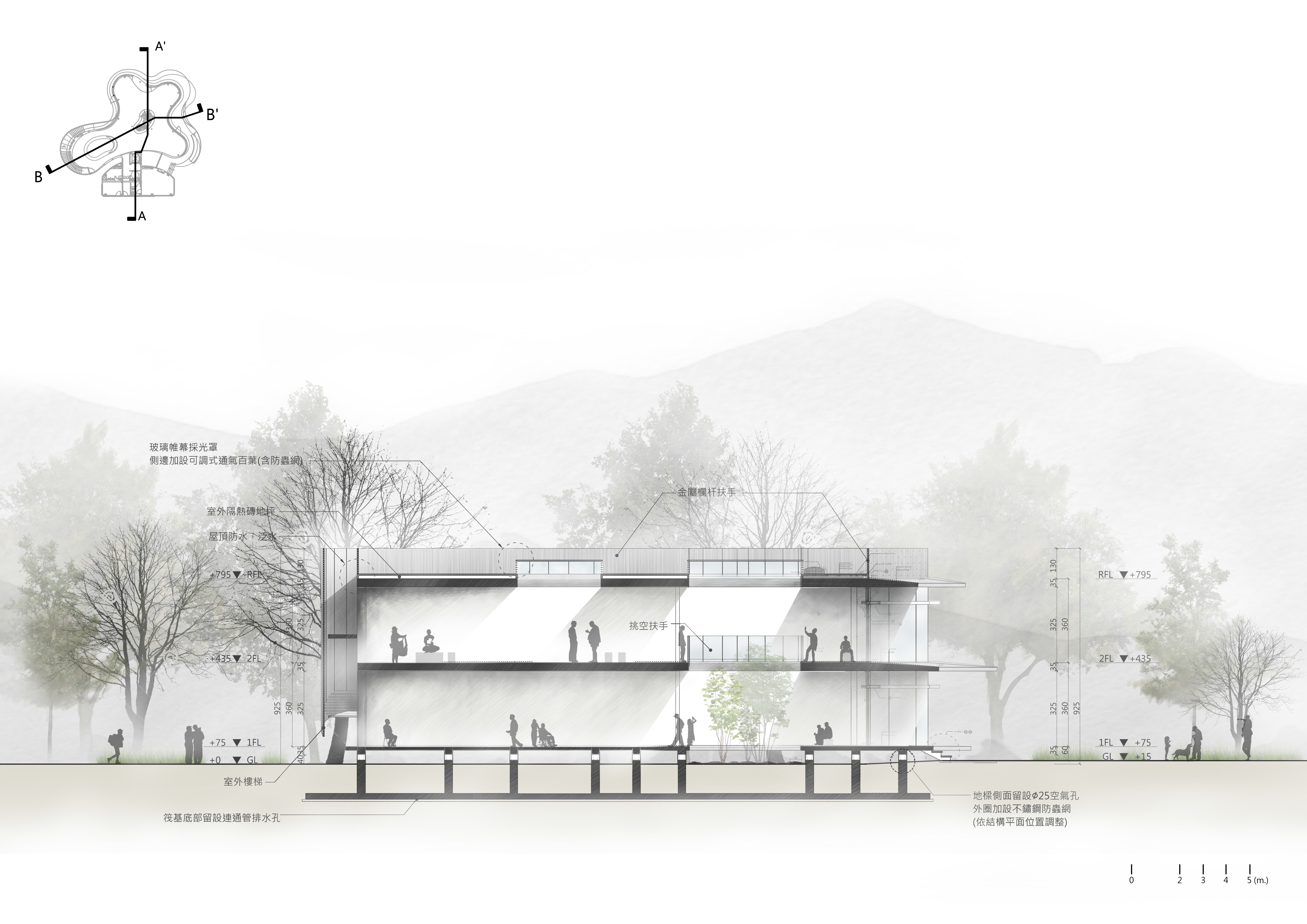 This building houses the information center of Academia Sinica. The ground floor is designed for receptions, presentations and seminars, etc.; the upper floor will be functioning as ecological exhibition hall. (All exhibits are excluded in the architect’s design scope.)
