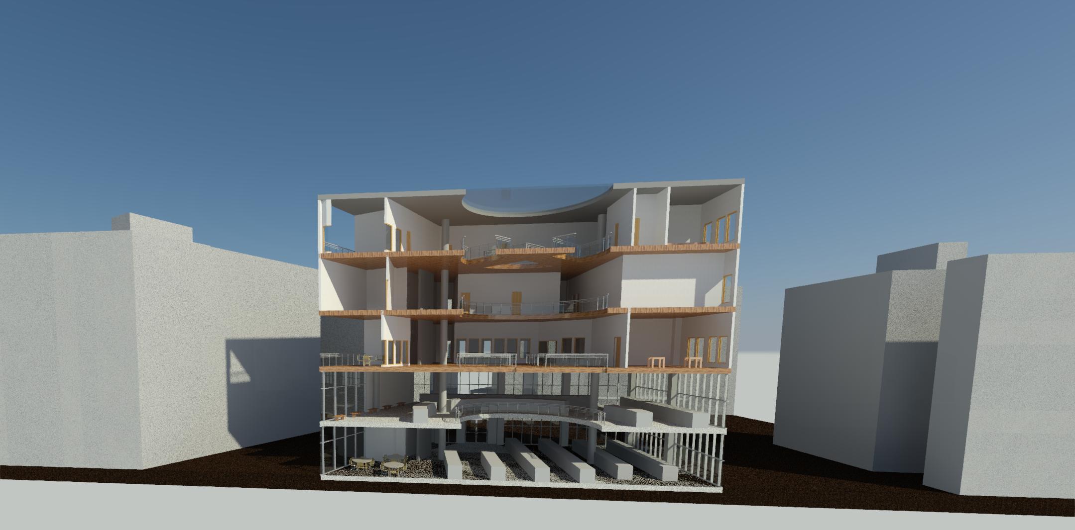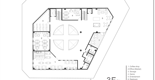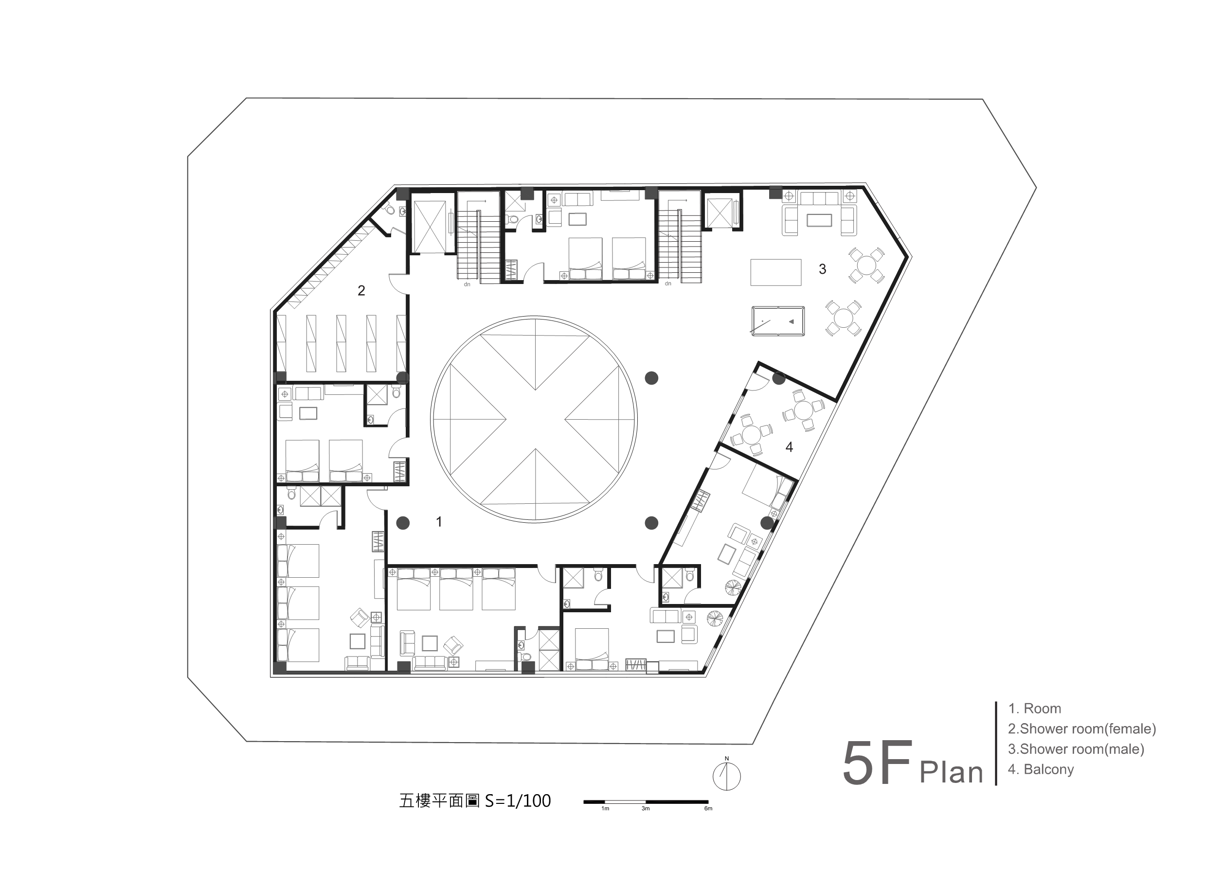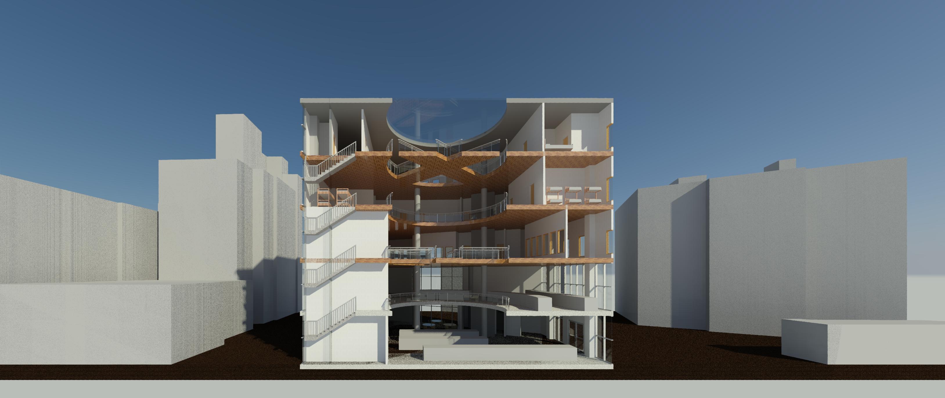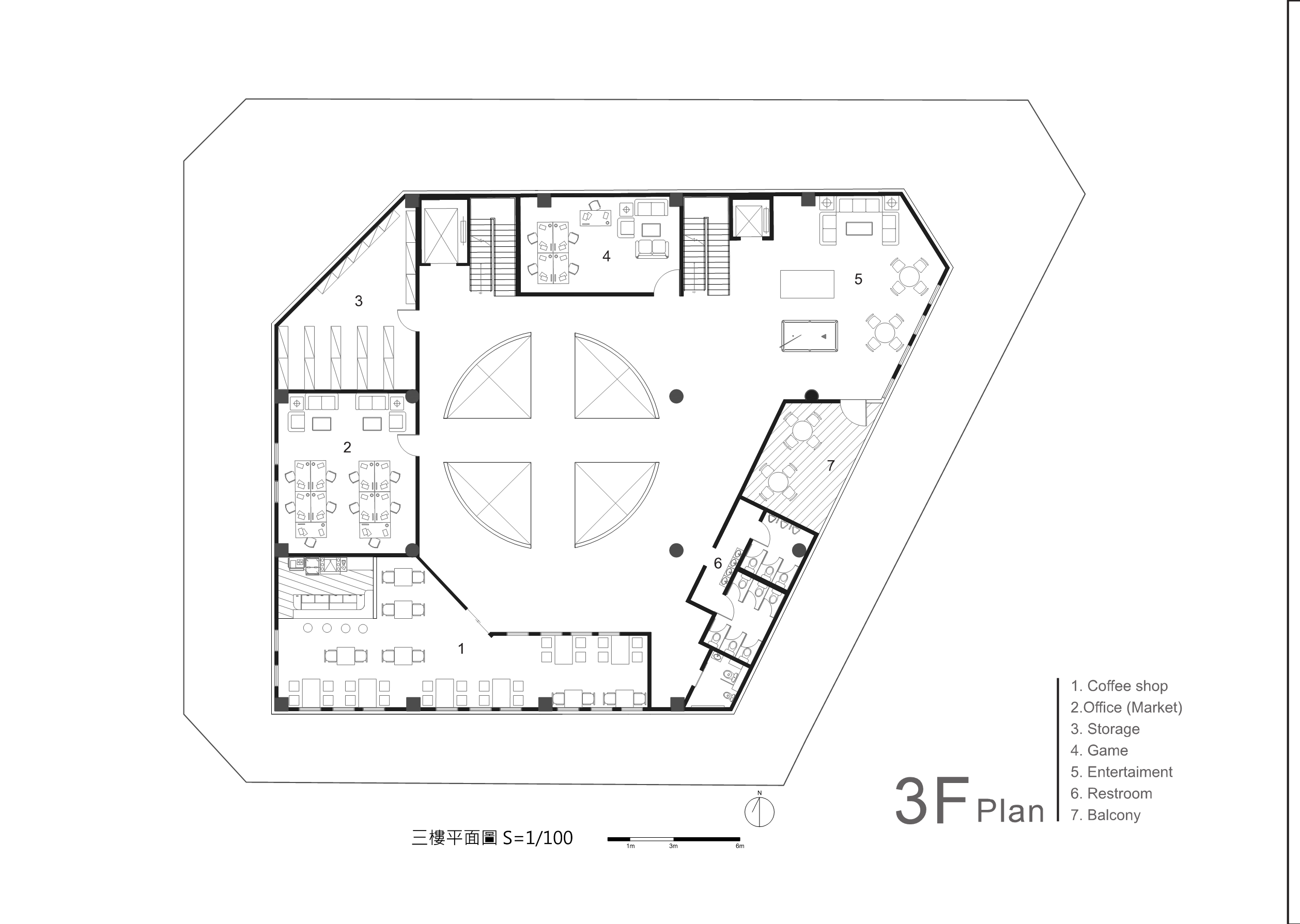 傳統市場的行為是台灣特有的文化特色,利用大挑空環繞整棟建築,帶入視線上與動線上的環繞,使外國旅客與當地居民能在此看似堅硬的量體裡,卻有通透的體驗,將來自不同國家,性質不同的人,聚縮在這個空間中。