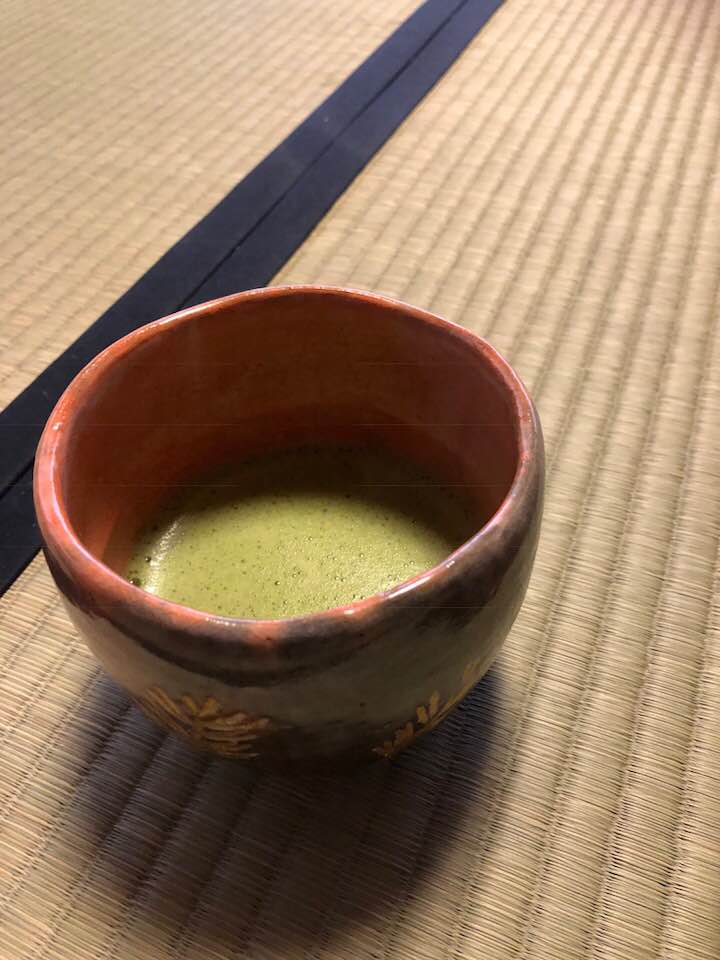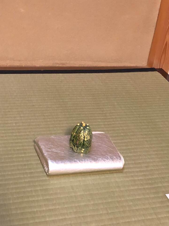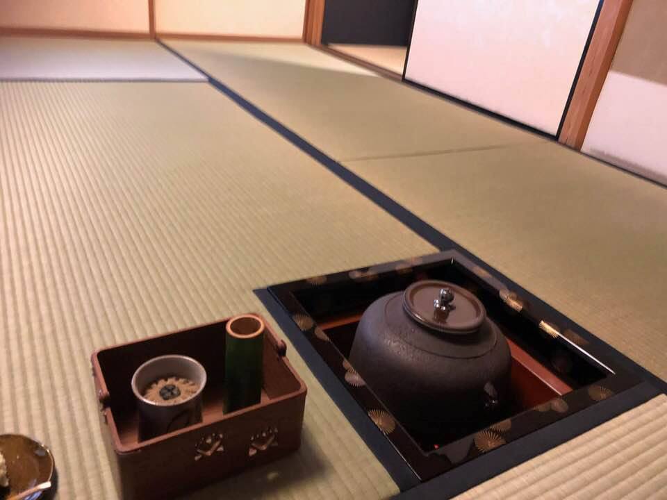 對鳳庵在釜,初春和菓子,茶銘千代之昔,象徵新年吉祥的茶道具,松,鶴長壽,真吉利!喝完茶仍要來享用培茶冰淇淋才滿足!