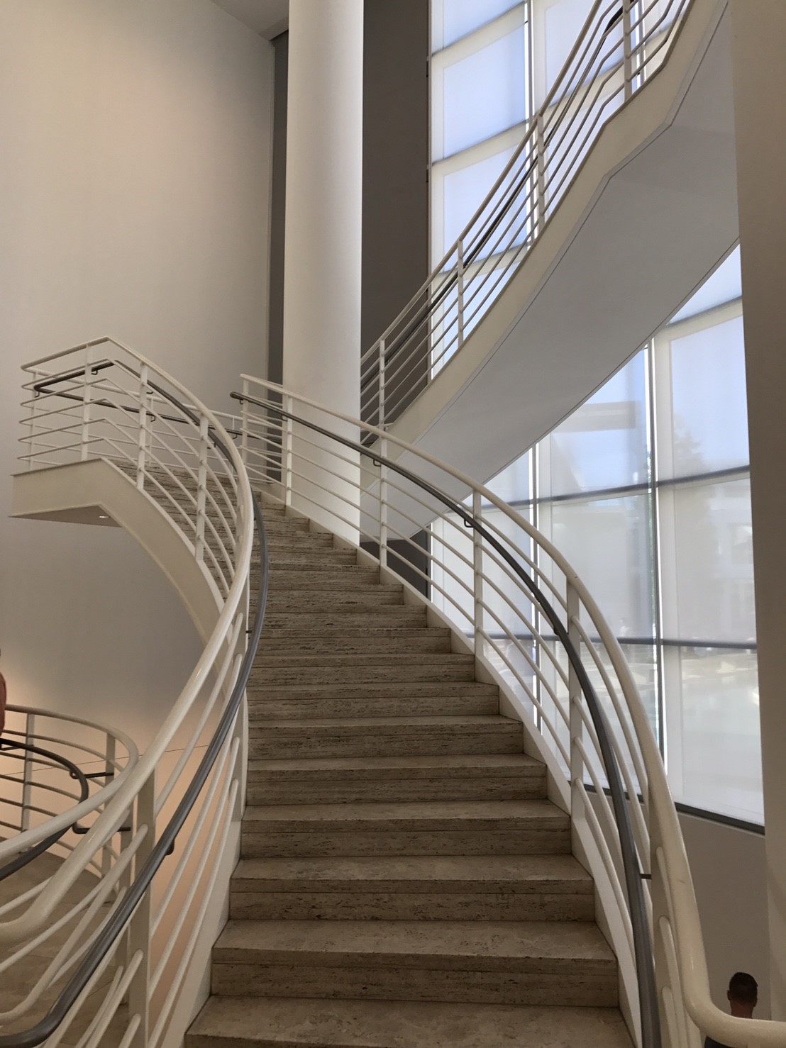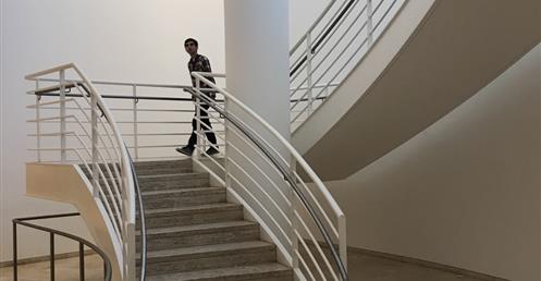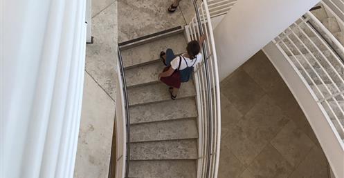 Throughout the Museum there is a layering in section between paintings, illuminated by skylights on the top floor and artworks which must be shielded from ultraviolet light on the lower levels.