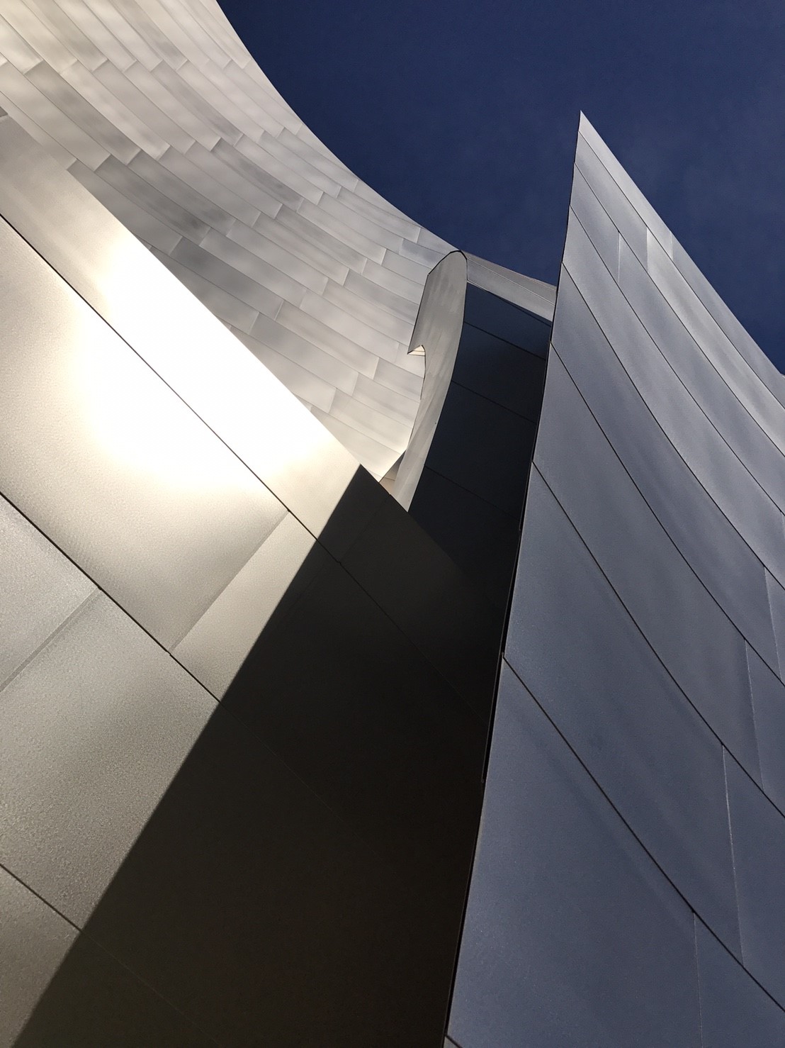 In architect Frank Gehry’s original design, Walt Disney Concert Hall was intended to be clad in stone. After receiving much acclaim for his titanium building in Bilbao, however, he was urged to change the stone to metal. With this new material Gehry was able to tweak the shape of the exterior, creating the iconic silver sails we see today.