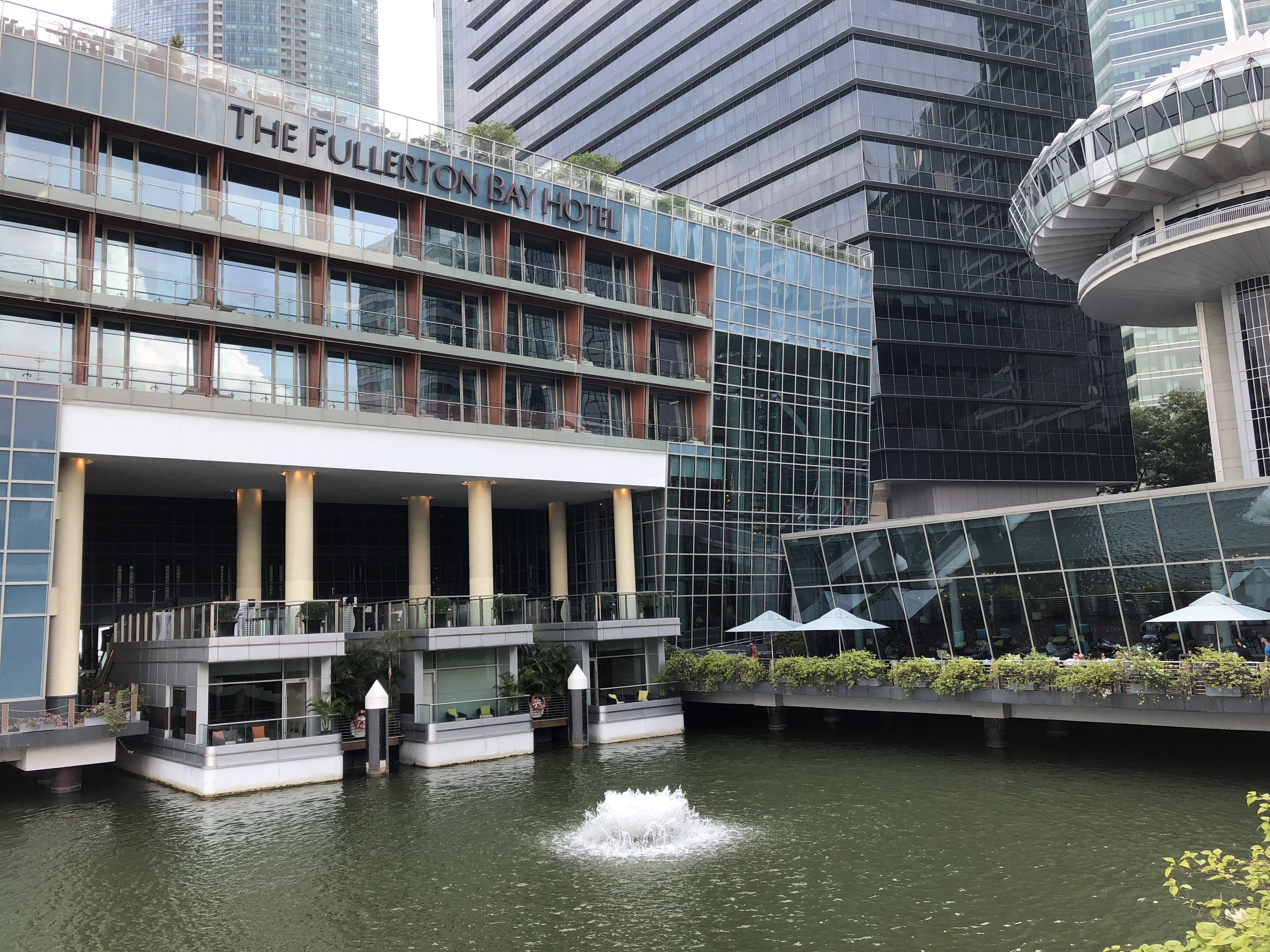 So in 2002, the Merlion was relocated 120 metres away from the original position to where it stands in Merlion Park today, in front of Fullerton Hotel and overlooking Marina Bay.