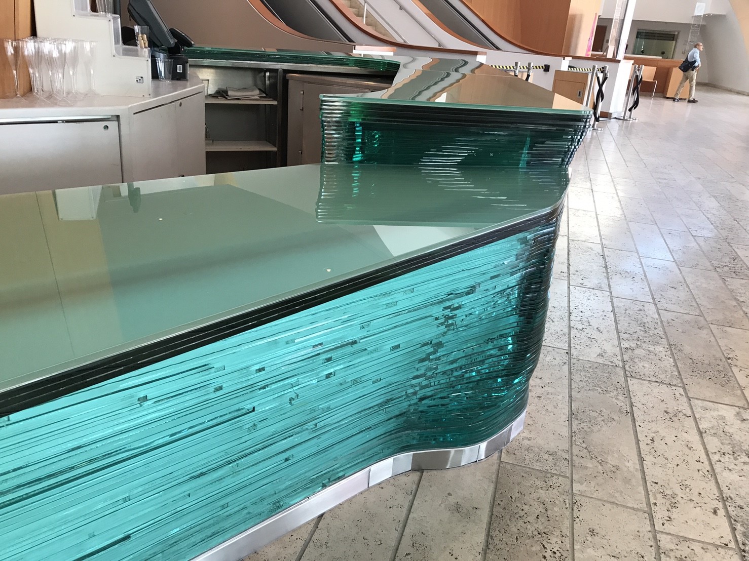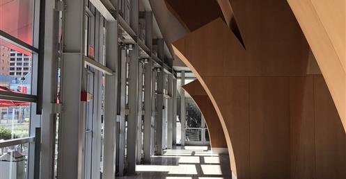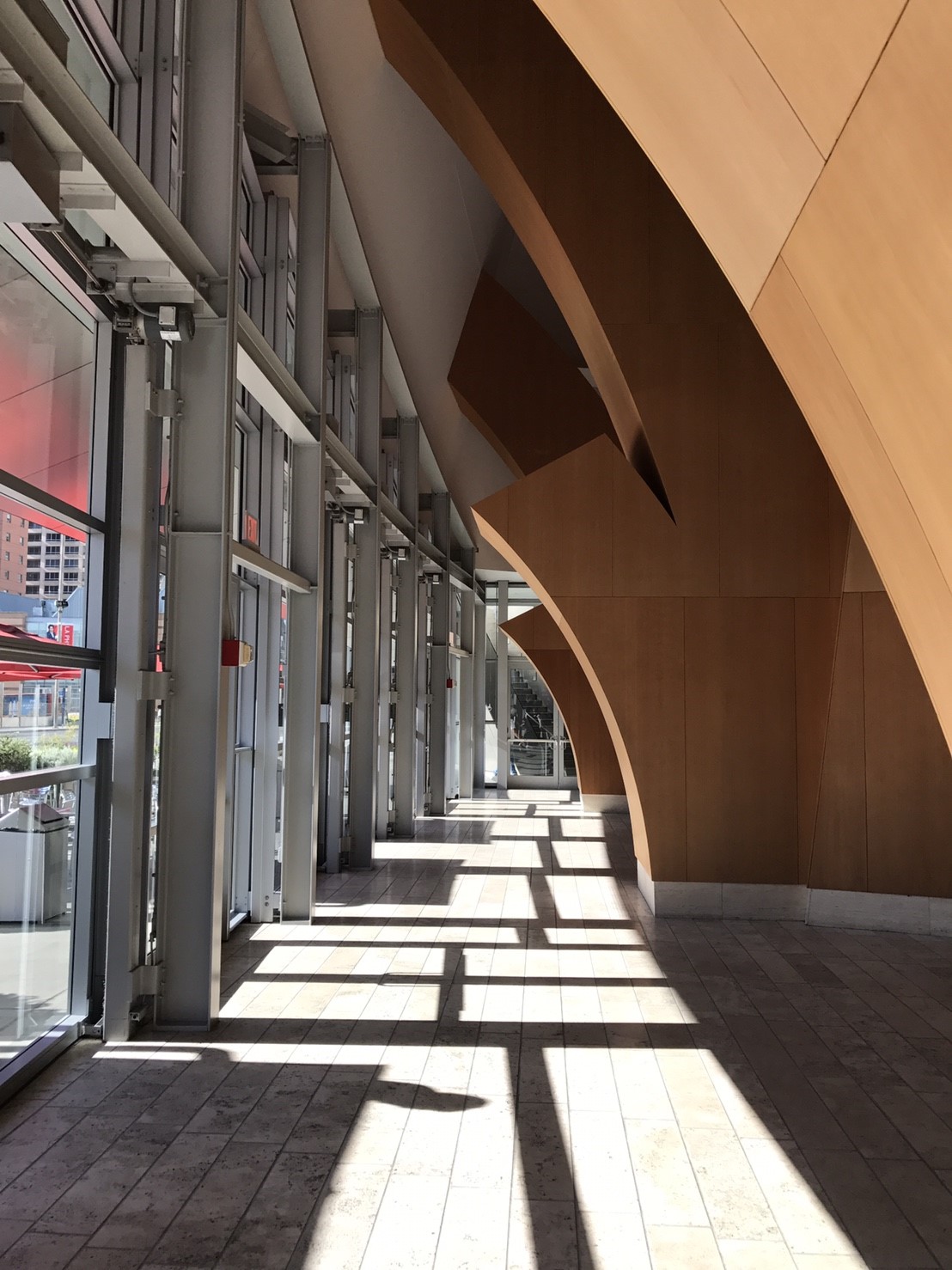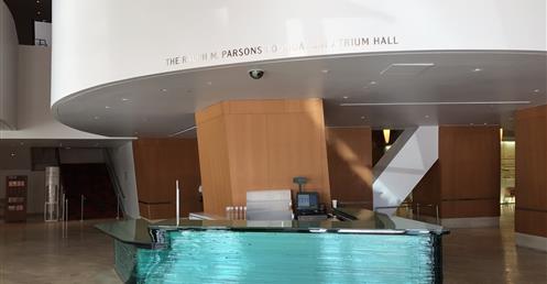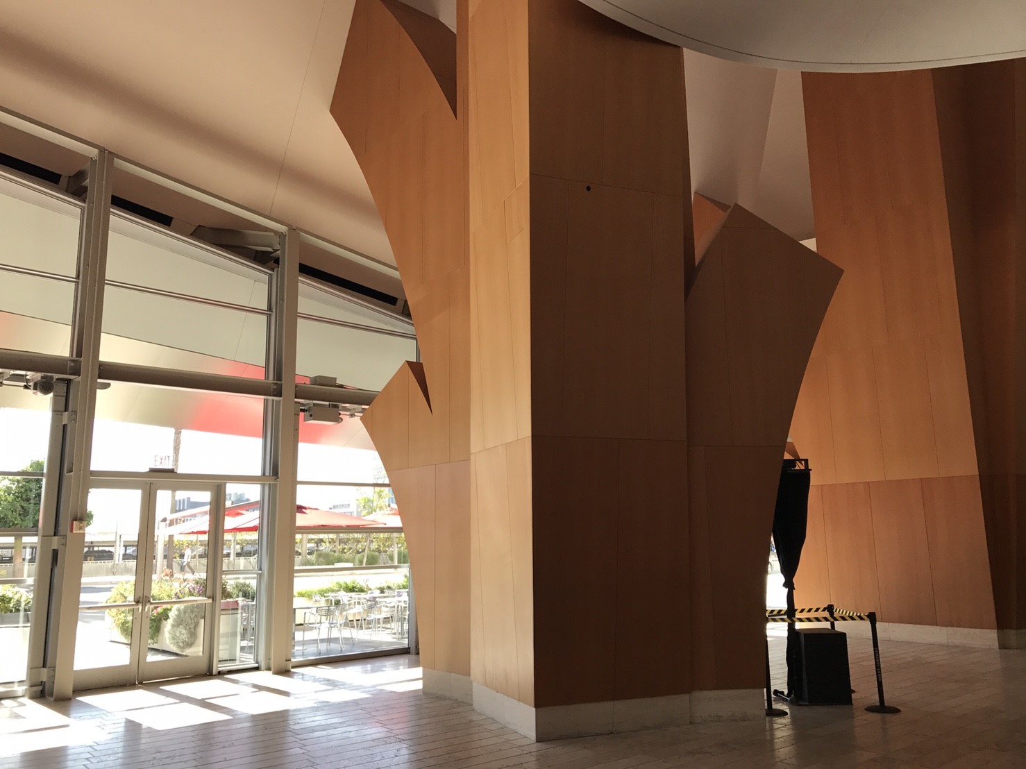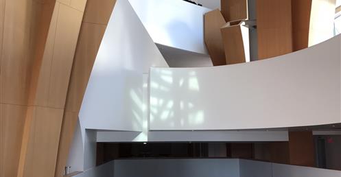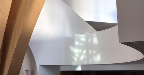 Gehry’s team visualized the lobby as a transparent, light-filled “living room for the city,” opening onto the sidewalk. In contrast to the tightly enclosed foyer of the Dorothy Chandler Pavilion, the lobby would have a separate identity and serve as a symbolic bridge between everyday life and the inner sanctum. Walt Disney Concert Hall was intended to be a center of civic activity, not just a destination for concertgoers.