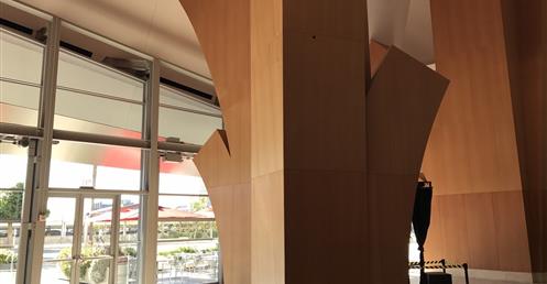 Inside the warm, Douglas fir-lined interior are 2,265 seats that are steeply raked and surround the stage. Ernest Fleischmann, former Executive Director of the LA Phil, felt that balconies and boxes reinforced a social hierarchy and proscenium arches separated players from listeners, and he urged that they be eliminated. In Walt Disney Concert Hall, the orchestra plays in the space in which the audience sits. The vineyard style seating brings the audience close to the orchestra, and offers an intimate view of the musicians and conductor from any seat.