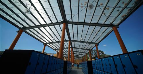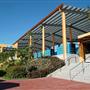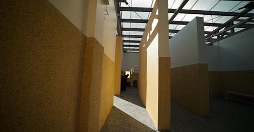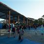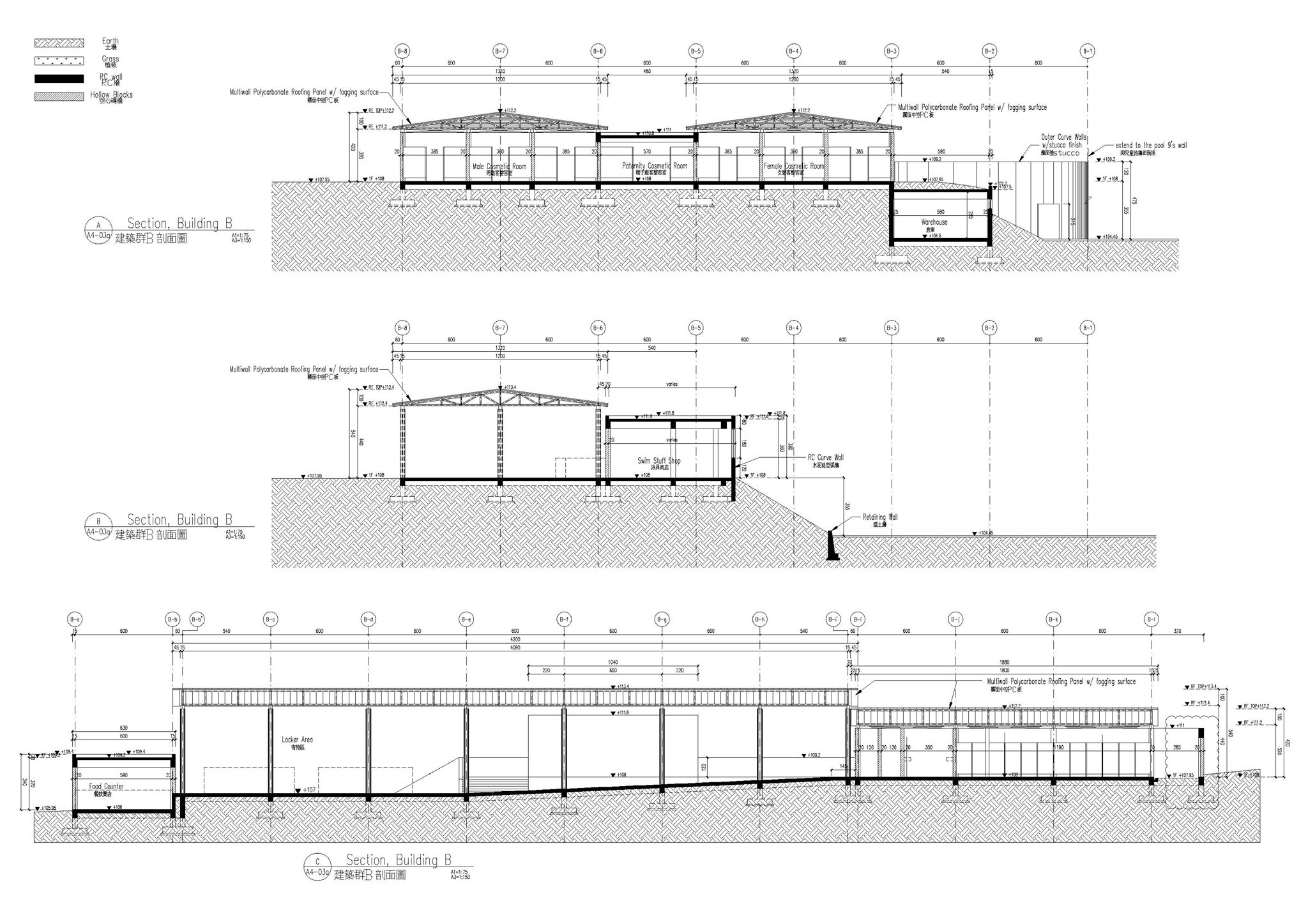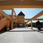 入口廣場以兩道弧形造型牆界定園內園外,長達125m的高弧牆有多處開口,供遊客、車輛行,長30m的低弧牆則強調出購票亭的位置,兒童戲水池則是由另一道弧型牆所界定,此弧牆埋入坡地中成為擋土牆,在這三道弧型牆之間散佈著員工辦公室、男女更衣室、紀念品店、服務中心、置物區及飲食店。