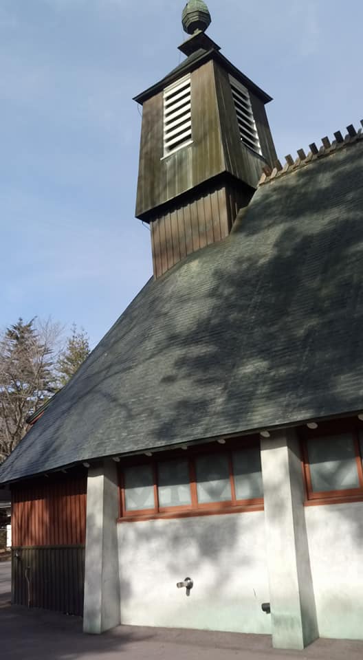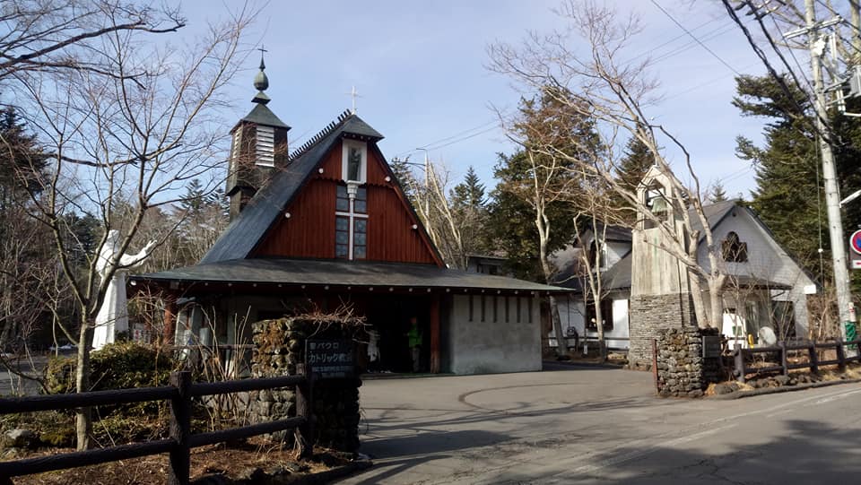 Karuizawa was popular in the late 1800s and early 1900s with the Western missionaries in Tokyo as a summer resort. One such missionary, Father Ward from England, built St. Paul Catholic Church in 1935. Designed by A. Raymond, the architecture is characterized by its steep, 3-sided roof with a large steeple and exposed concrete. St. Paul Catholic Church is a popular symbol of Kariuzawa.