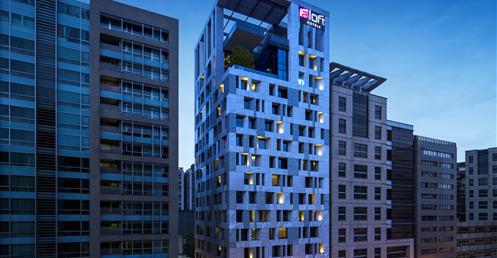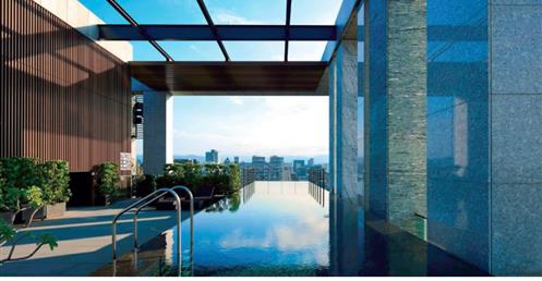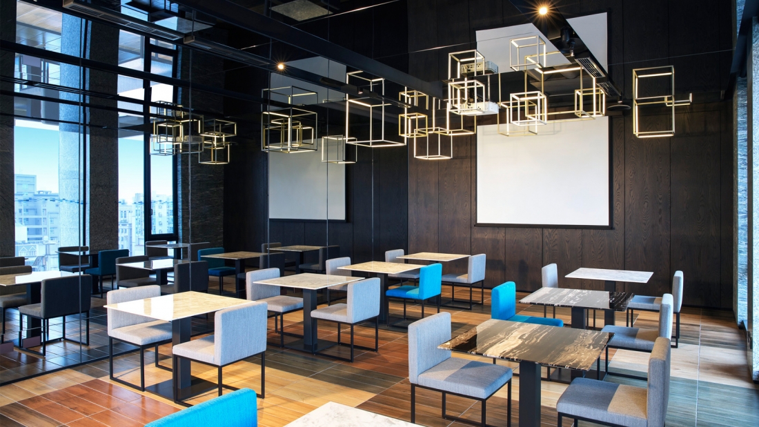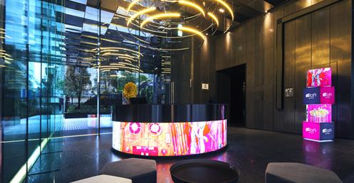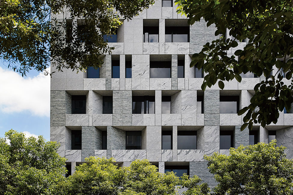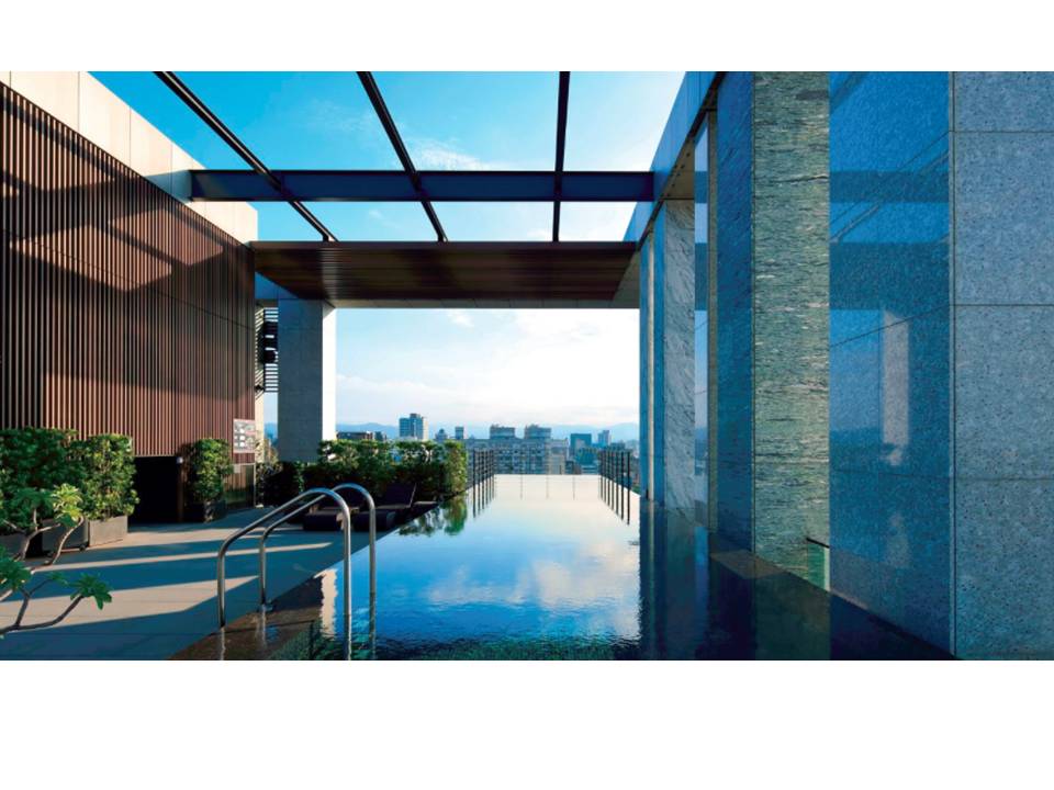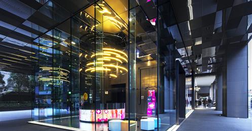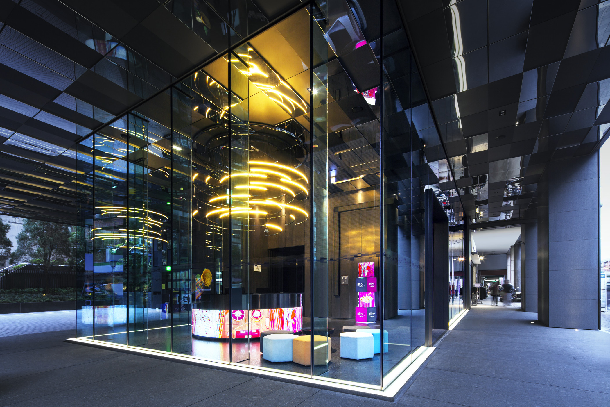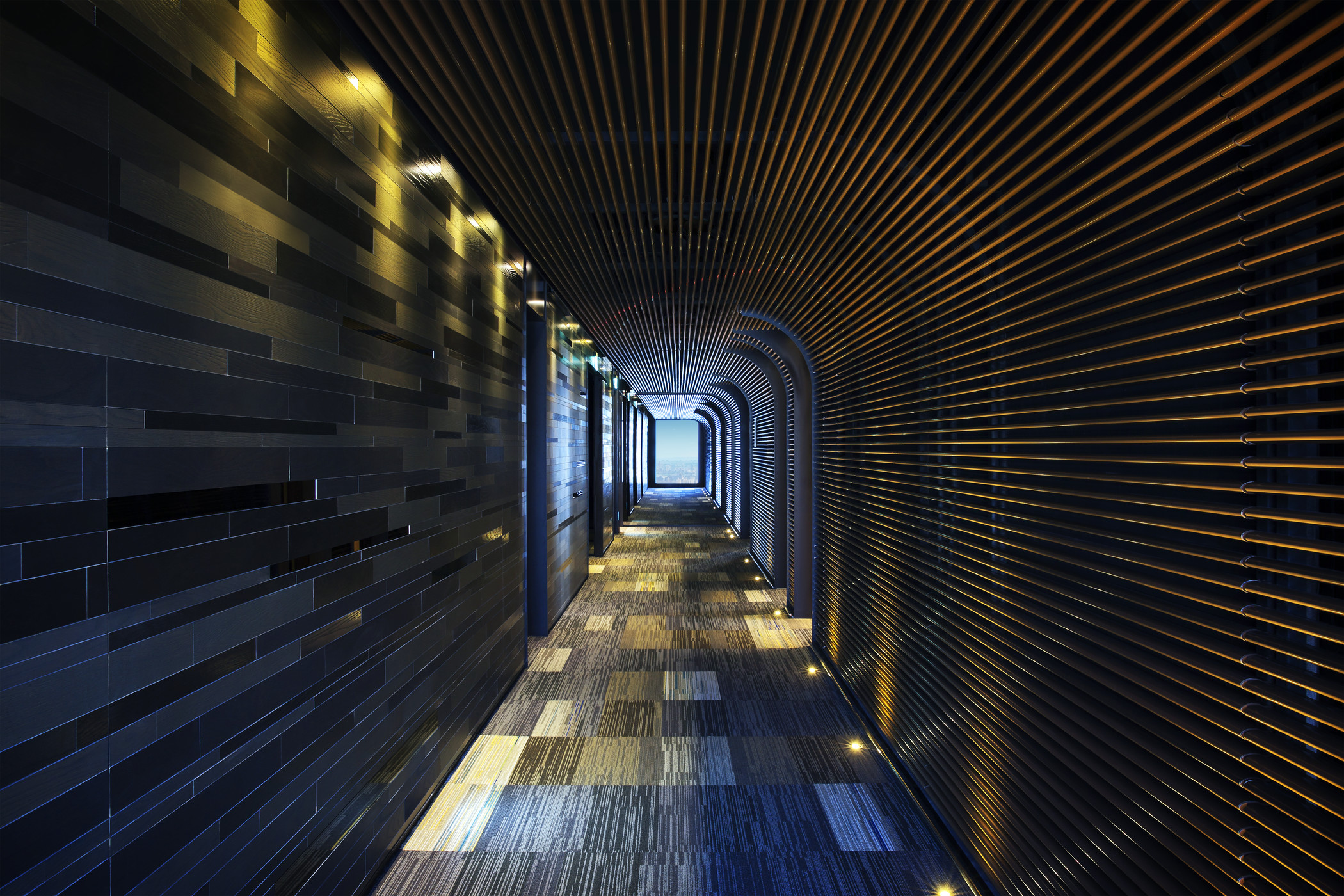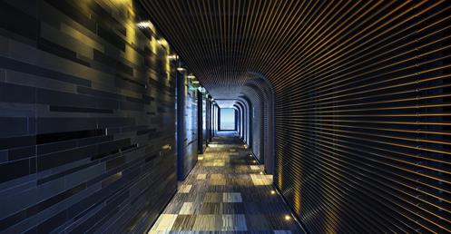 淬取東方文化的本質,以抽象轉化的手法,將文化的氛圍書寫於飄浮之石中。化生墨與竹簡的形象,以動態流動的空間,將文化的面象體現於城市建築中。