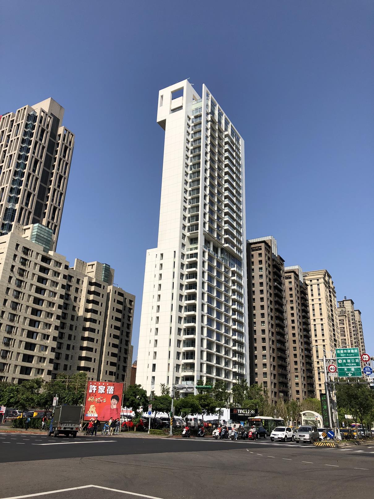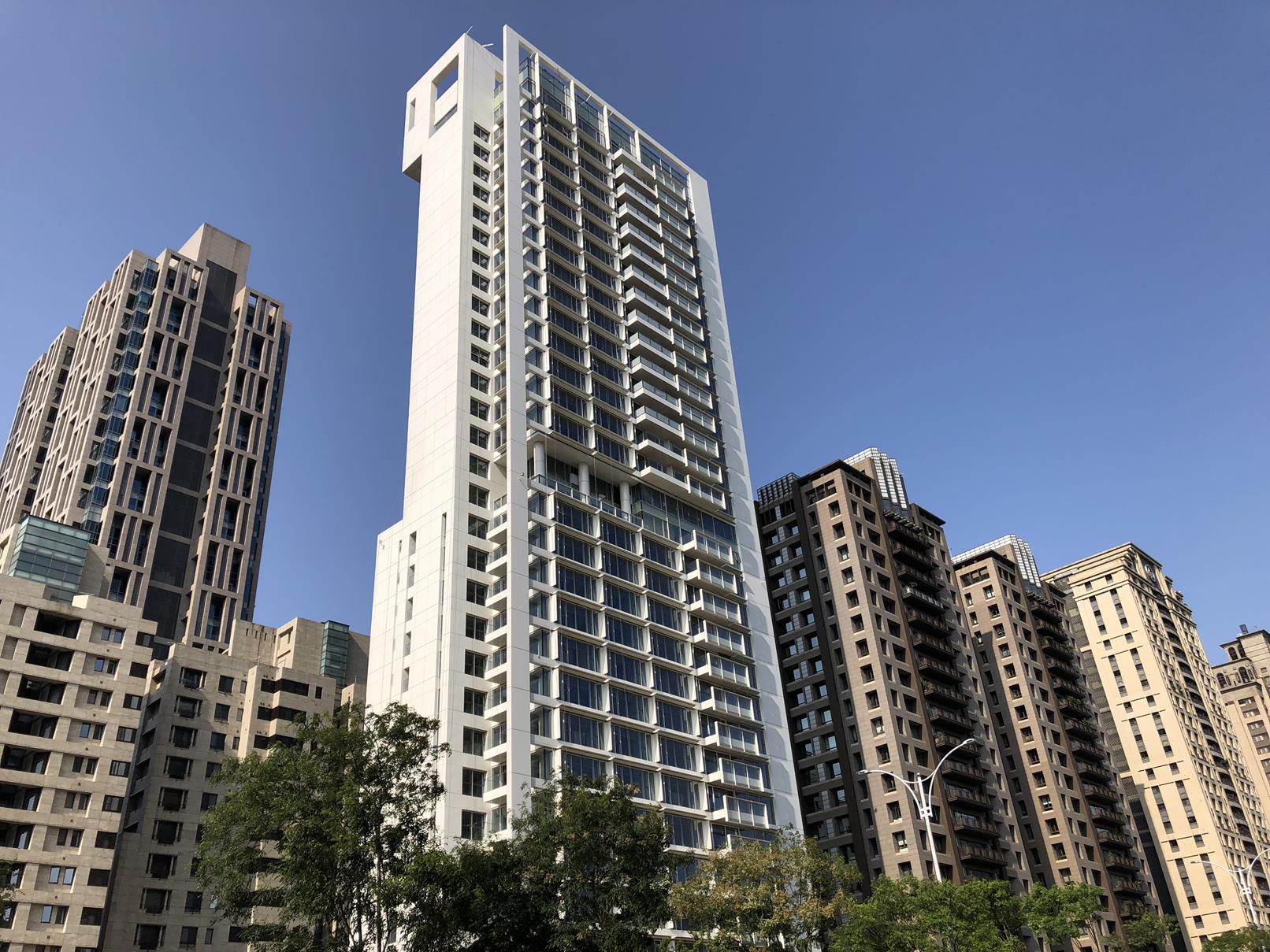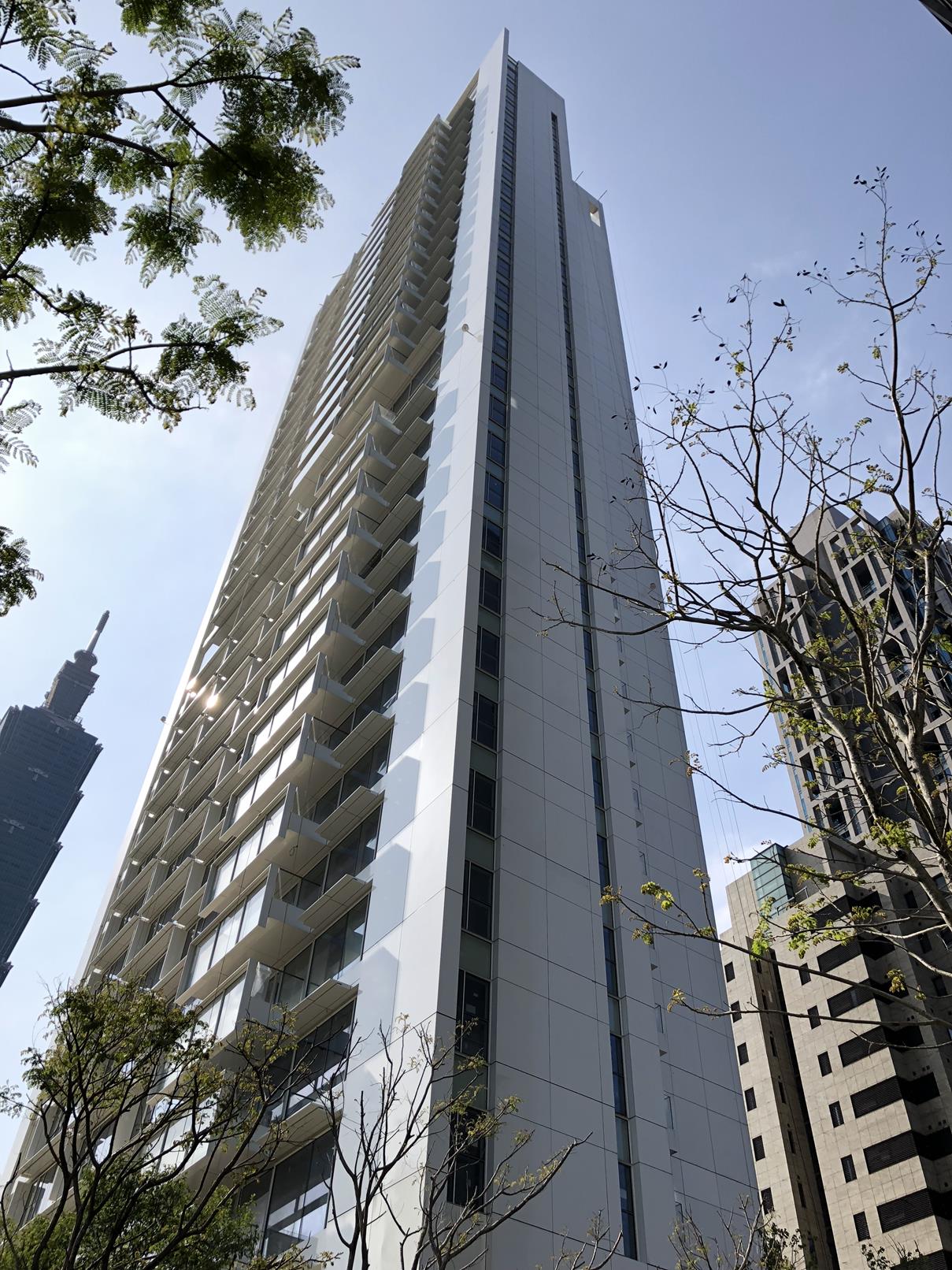 Richard Meier 在台北市松仁路信義路口的高層住宅。預計今年完工。