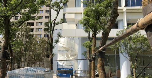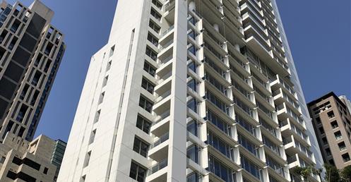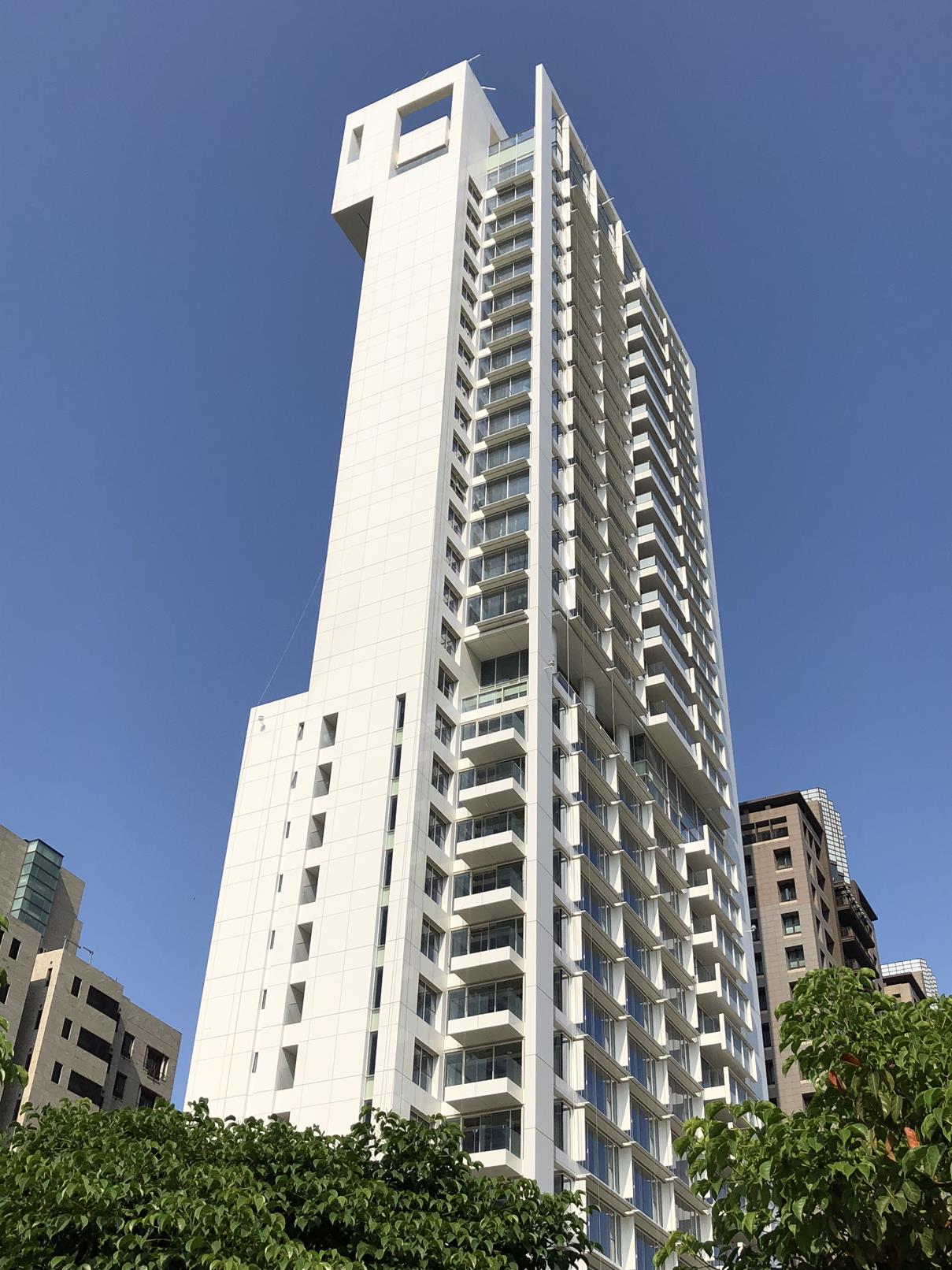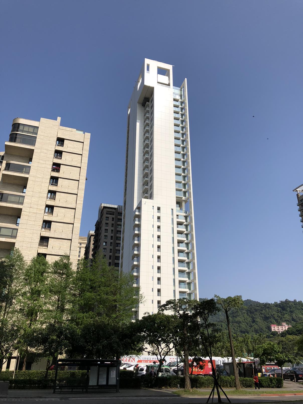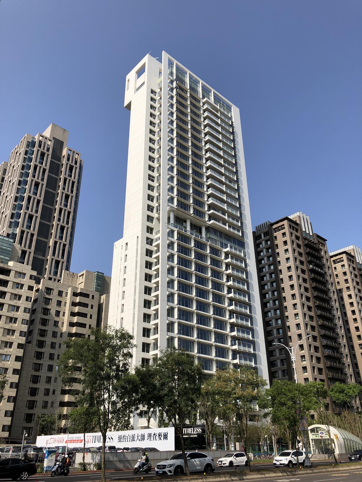 Richard Meier 在台北市松仁路信義路口的高層住宅。預計今年完工。