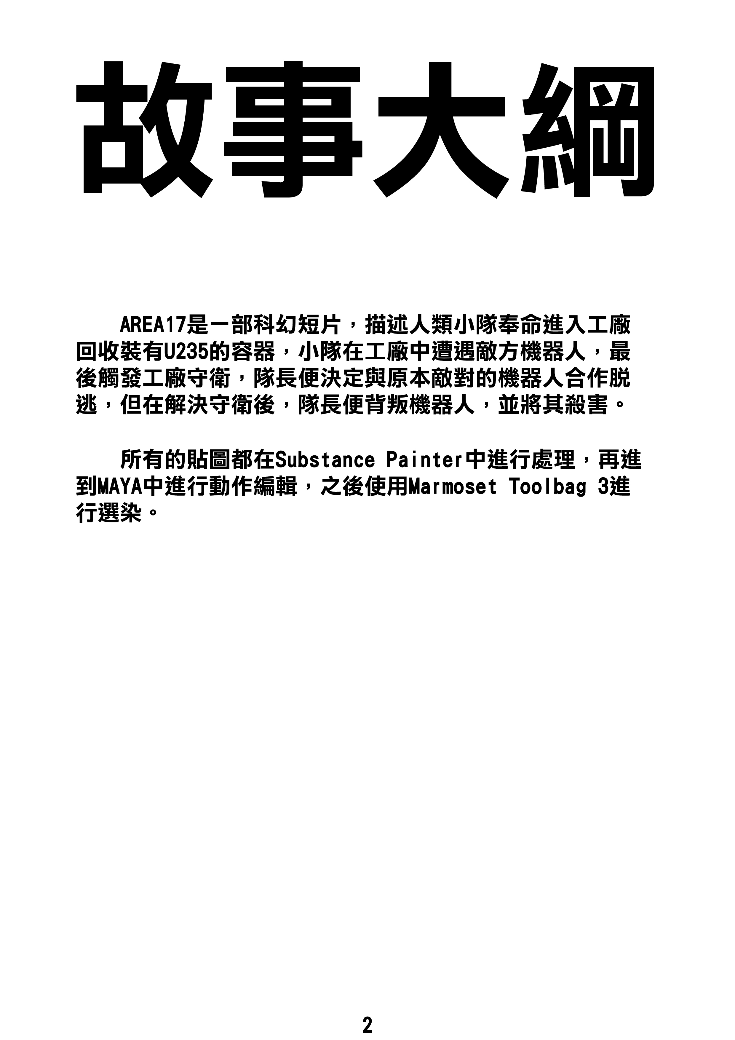 AREA17是一部科幻短片,描述人類小隊奉命進入工廠回收裝有U235的容器,小隊在工廠中遭遇敵方機器人,最後被工廠守衛發現,隊長便決定與原本敵對的機器人合作脫逃,但在解決守衛後,隊長便背叛機器人,將其殺害。
