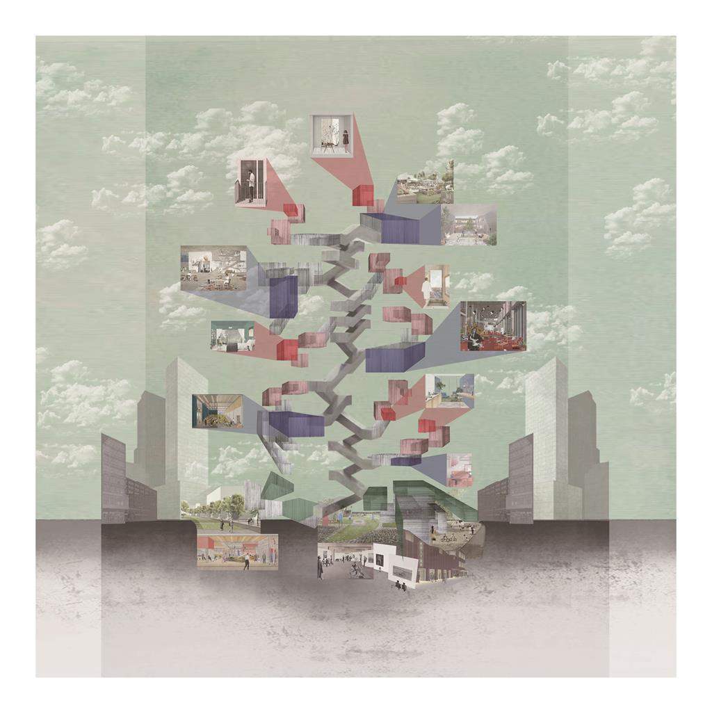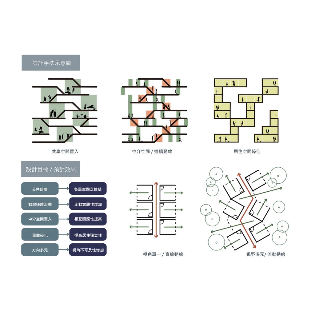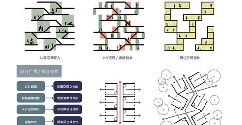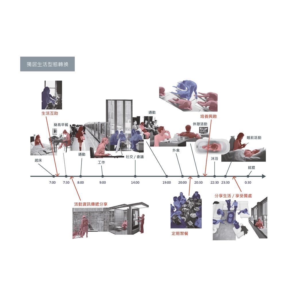 如何透過空間操作改變都市的獨居隔間型態,打破傳統門戶概念,使獨居不在只是一種空間形式而是形成一個社群。並且將住宅結合學習、娛樂等機能性質建築,將住宅從單純的居住提升為"生活",使長期獨居不再成為都市的問題。