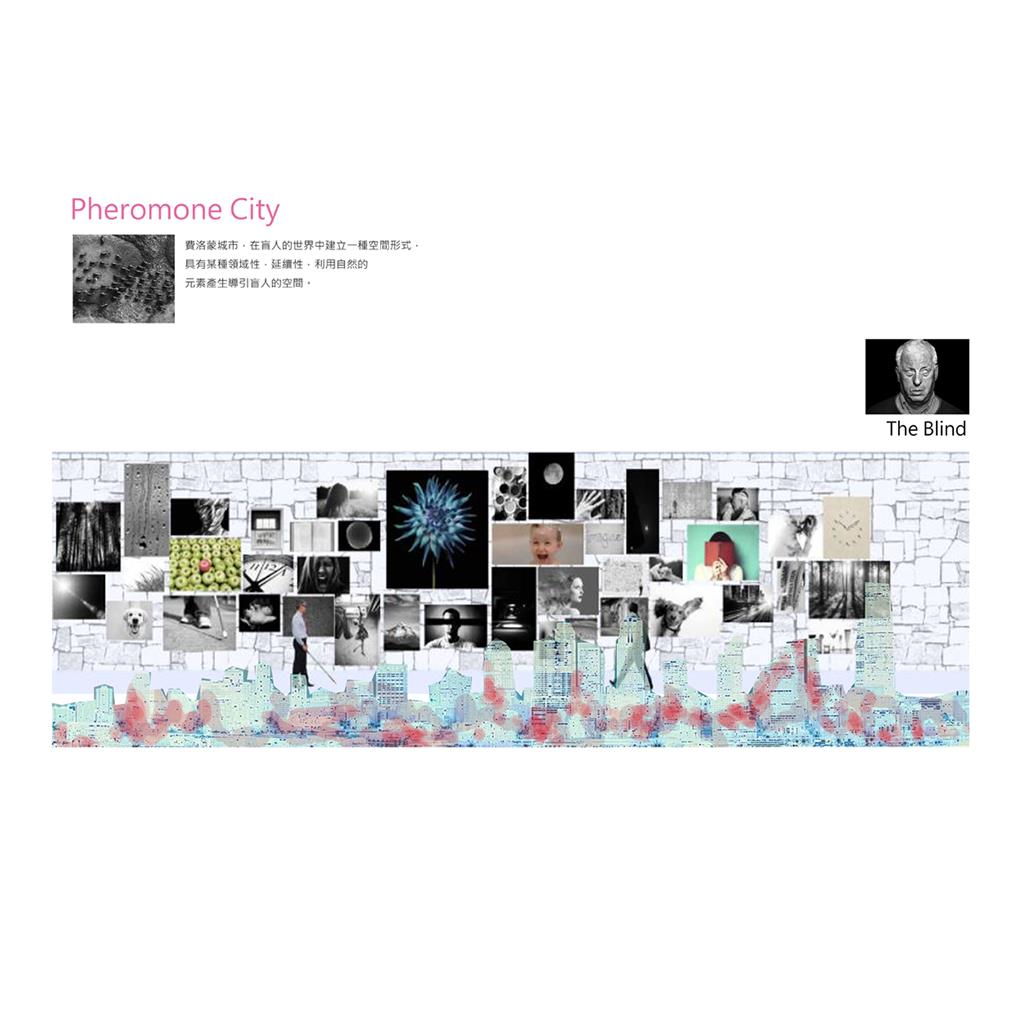 對於盲人,大家好像都也只知道,看不見,職業:按摩。其實盲人可以過得跟明眼人一樣,自由的出入,自由人與人群交流,自然的走動在社會的角落。如何在空間上達成一種"輔助",我想不一定是只有導盲杖 導盲磚,我想創造一種像費洛蒙一樣