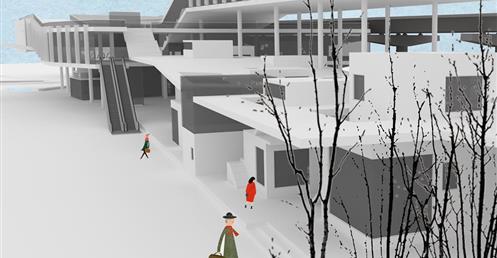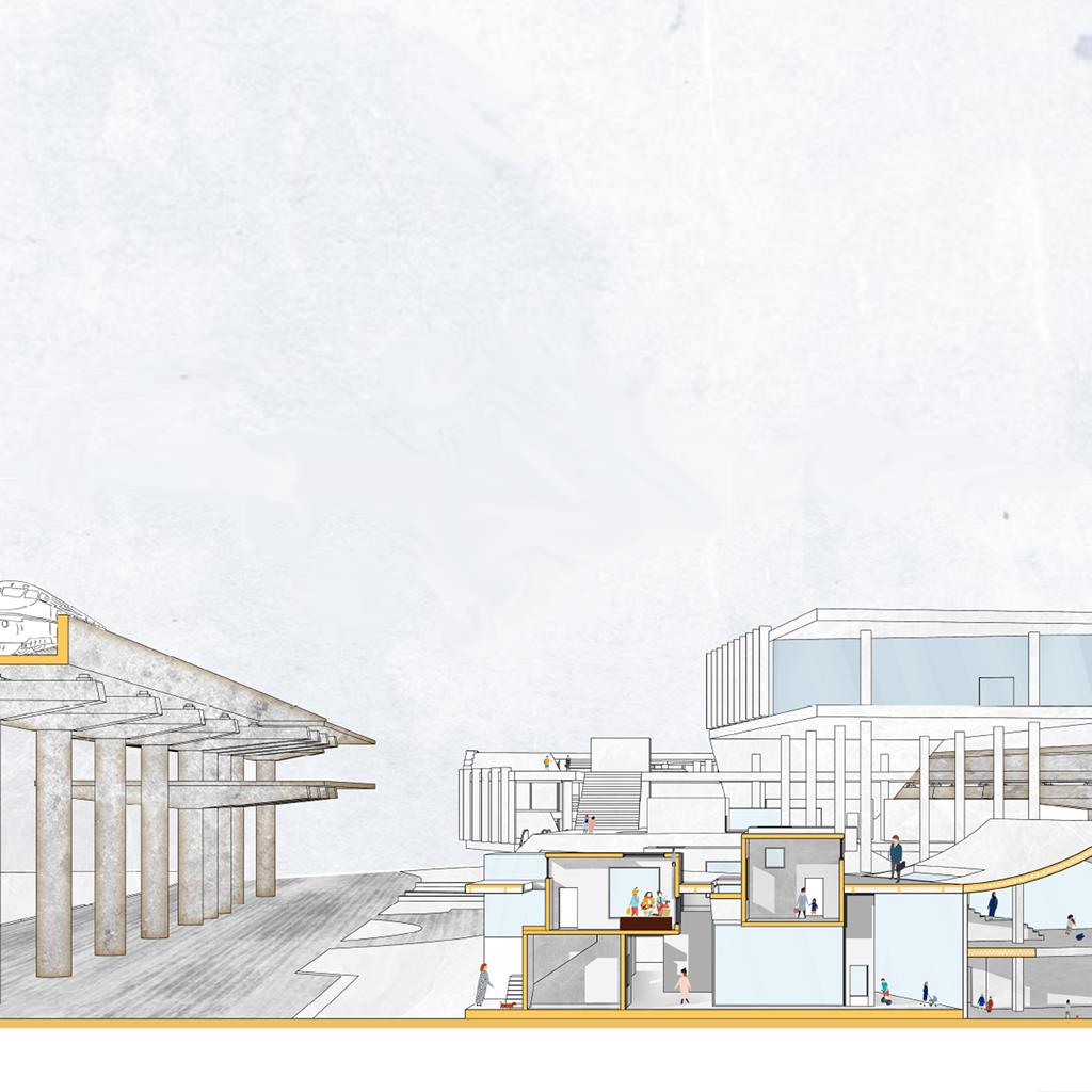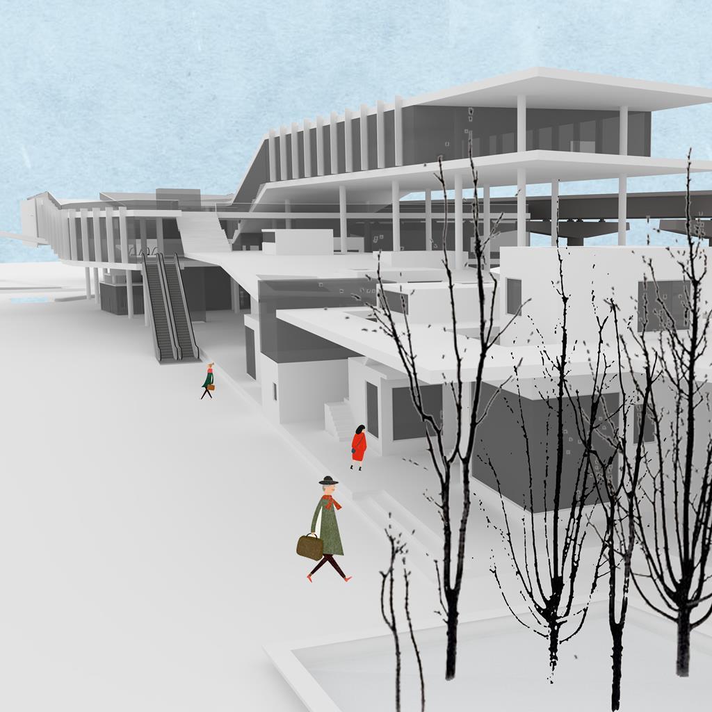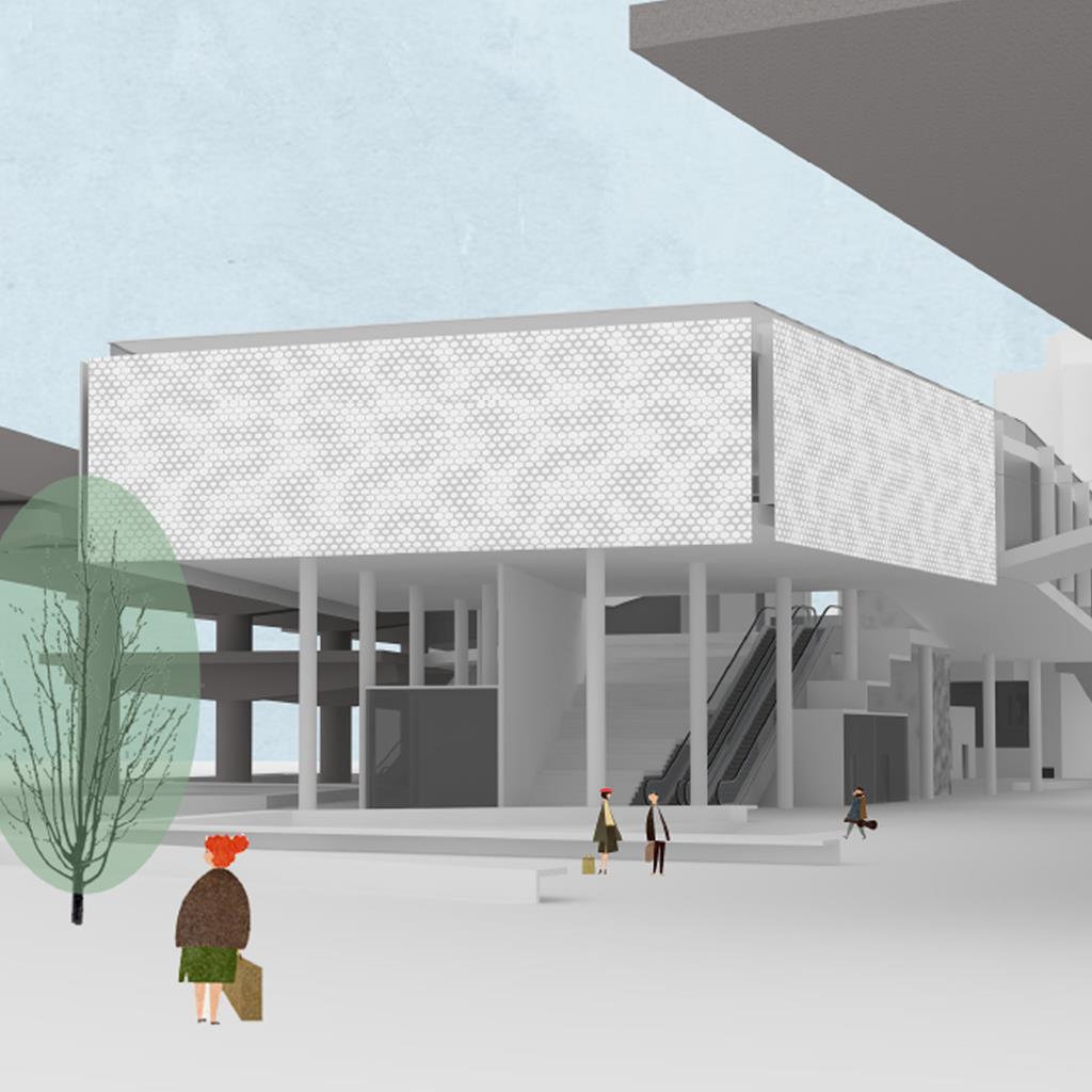 我的設計率先從兩座車站開始,藉由連結通道來往的人群奠基人流,加上在地居民、重劃區的未來人口,使得基地本身具備豐富的使用者,將此地塑造成具有豐富功能的社區客廳,並使空間得以共享