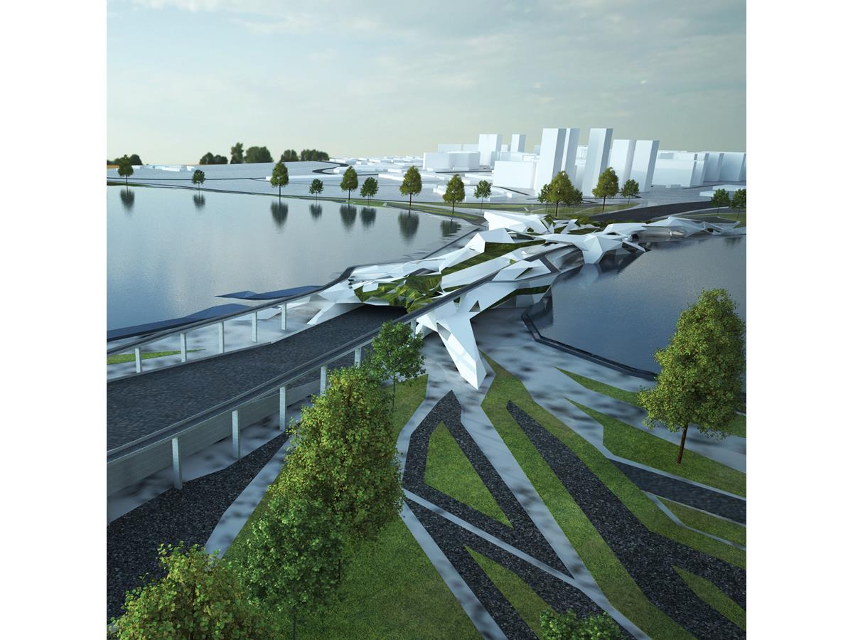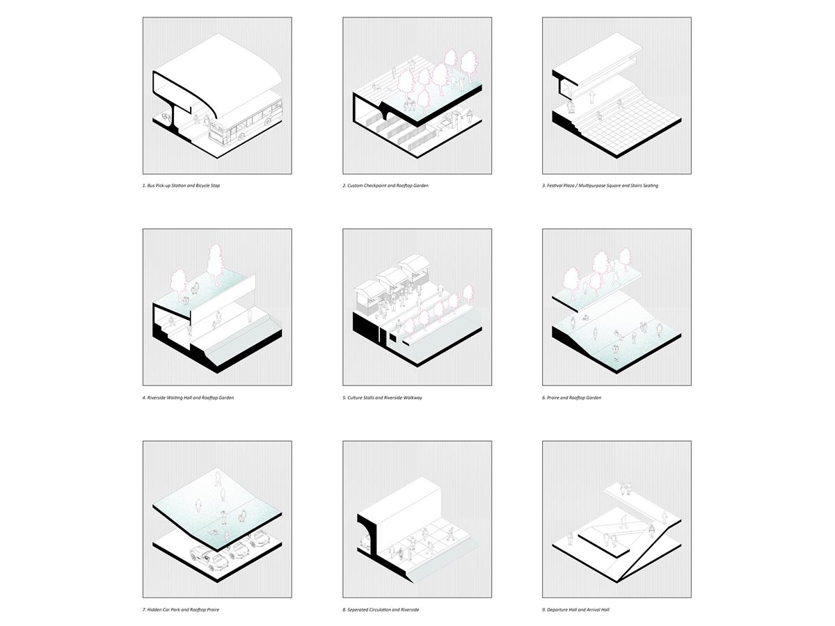 The aim of the project is to introduce a multifunctional bridging infrastructure that blends the gap between two countries to generate an unprecedented synthesis between urbanity and the experience of country crossing.