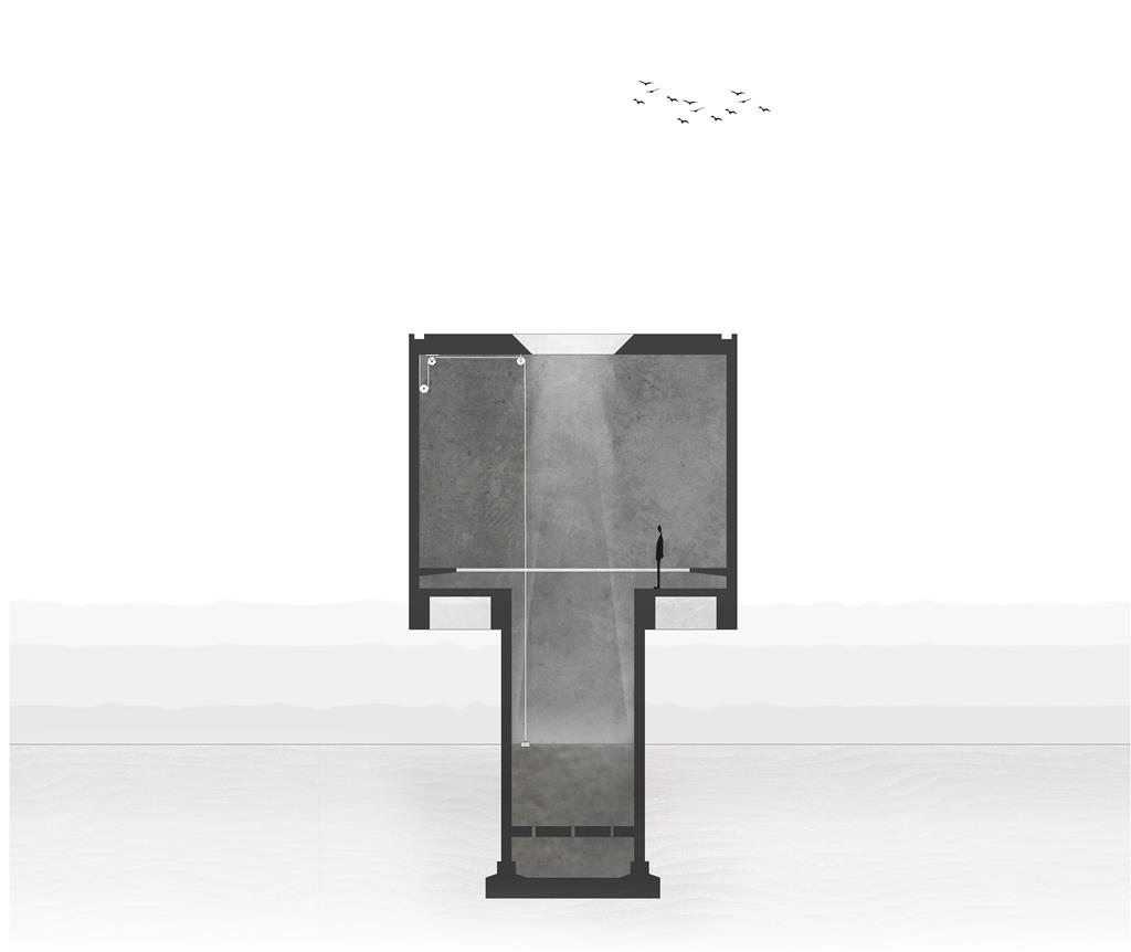 藉由潮汐觀測空間和材質,讓具體空無一物的空間,接納了空,輕、模糊、不確定的狀態,成為了看似什麼都沒有,卻能夠放大自身無形感受的白。