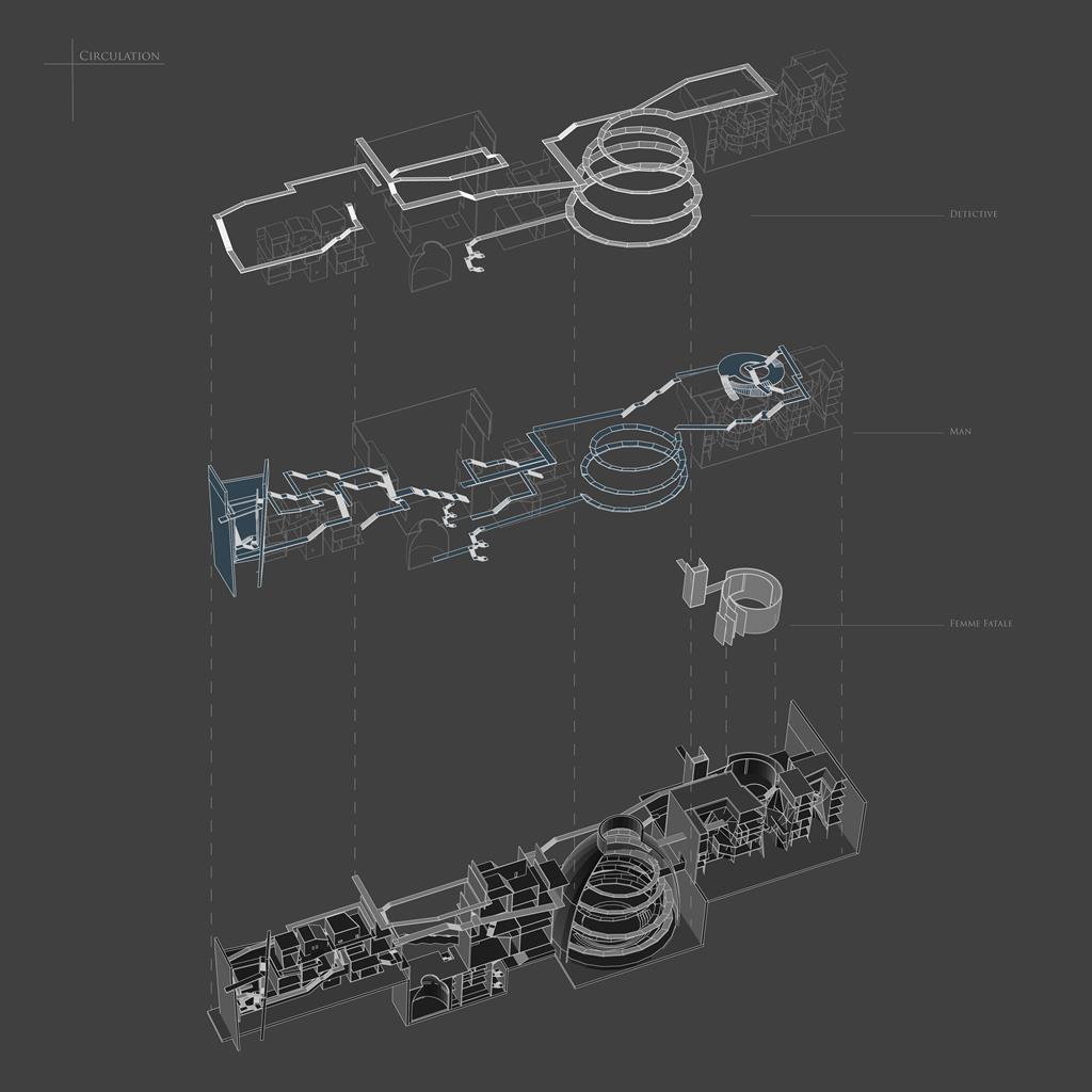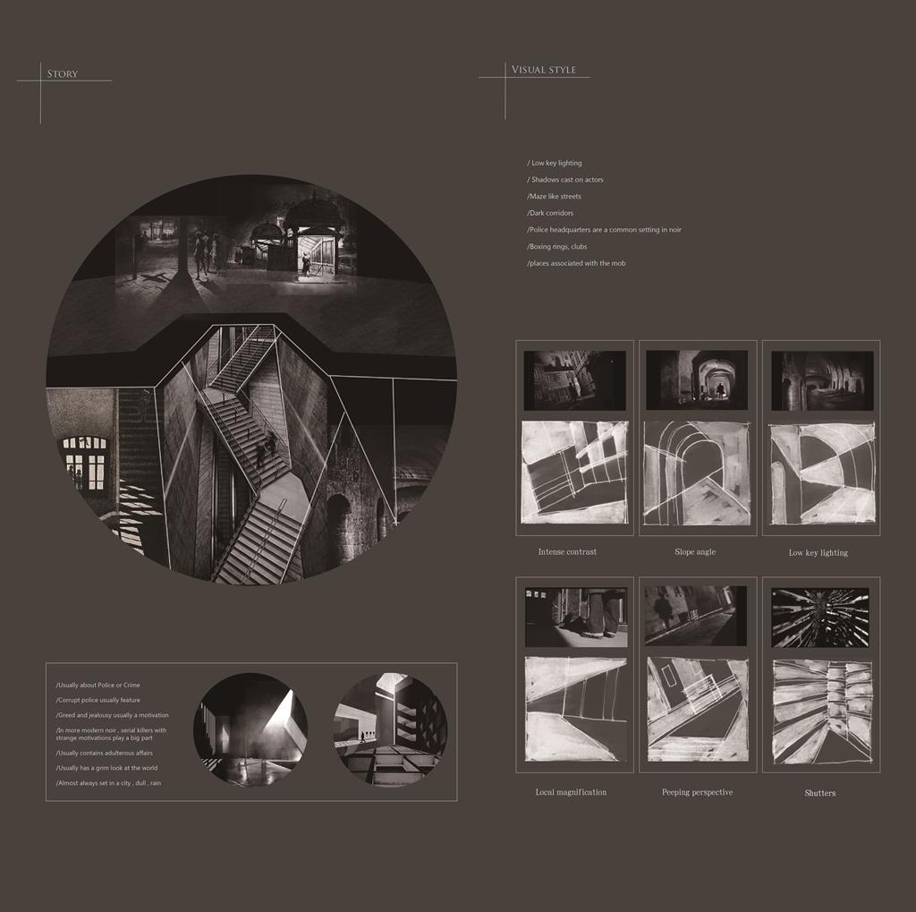 黑色電影的故事發生在街道轉角或是樓梯,在人潮眾多以及結構複雜的台北車站,路線的多重繁雜,交會處的空間或是隧道串聯著故事的轉折,如同迷宮般的方式隱藏在都市各個角落。